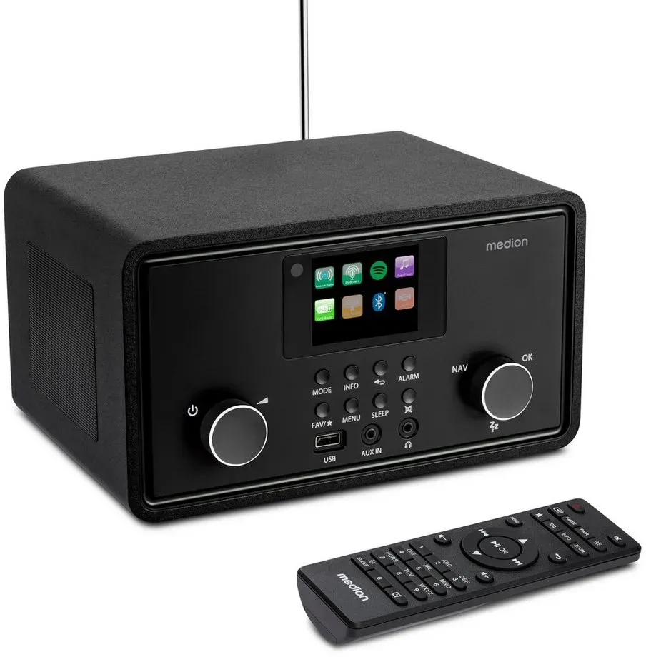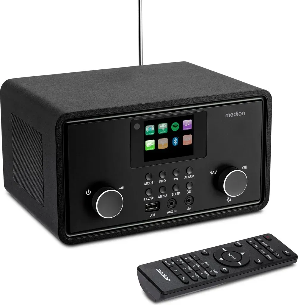 Zustand: Gebraucht - Internet-Radios Internet Radios - MEDION - MD88069 - EAN: 4061275213430 - Stereo Internetradio mit DAB+/UKW-Radioempfang, drahtlose Anbindung durch WLAN-Technologie Empfang von über 25.000+ Internetradiosender & zahlreiche Podcasts aus aller Welt, automatischer und manueller Sendersuchlauf mit automatischer Senderspeicherung 7,1 cm (2,8€²€²) TFT-Farbdisplay (320 x 240 Pixel), Bluetooth-Wiedergabefunktion, unterstützt Spotify-Connect, MEDION LifeStream 2 APP Weckfunktion mit zwei individuell einstellbaren Weckzeiten und Schlummerfunktion (Snooze) sowie Einschlaffunktion (Sleep Timer) Lieferumfang: MEDION LIFE MD88069 P85027 Internetradio mit DAB+, Fernbedienung inkl. Batterien, Netzadapter, Bedienungsanleitung, karte - 2 Händler im amazon.de Marketplace ![]() ![]() MEDION P85027 Internetradio (DAB Plus, UKW Radio, Spotify Connect, WLAN, Bluetooth, Streaming, Equalizer, Farbdisplay, USB, AUX, Wecker, Schlummerfunktion, Sleep Timer) schwarz
