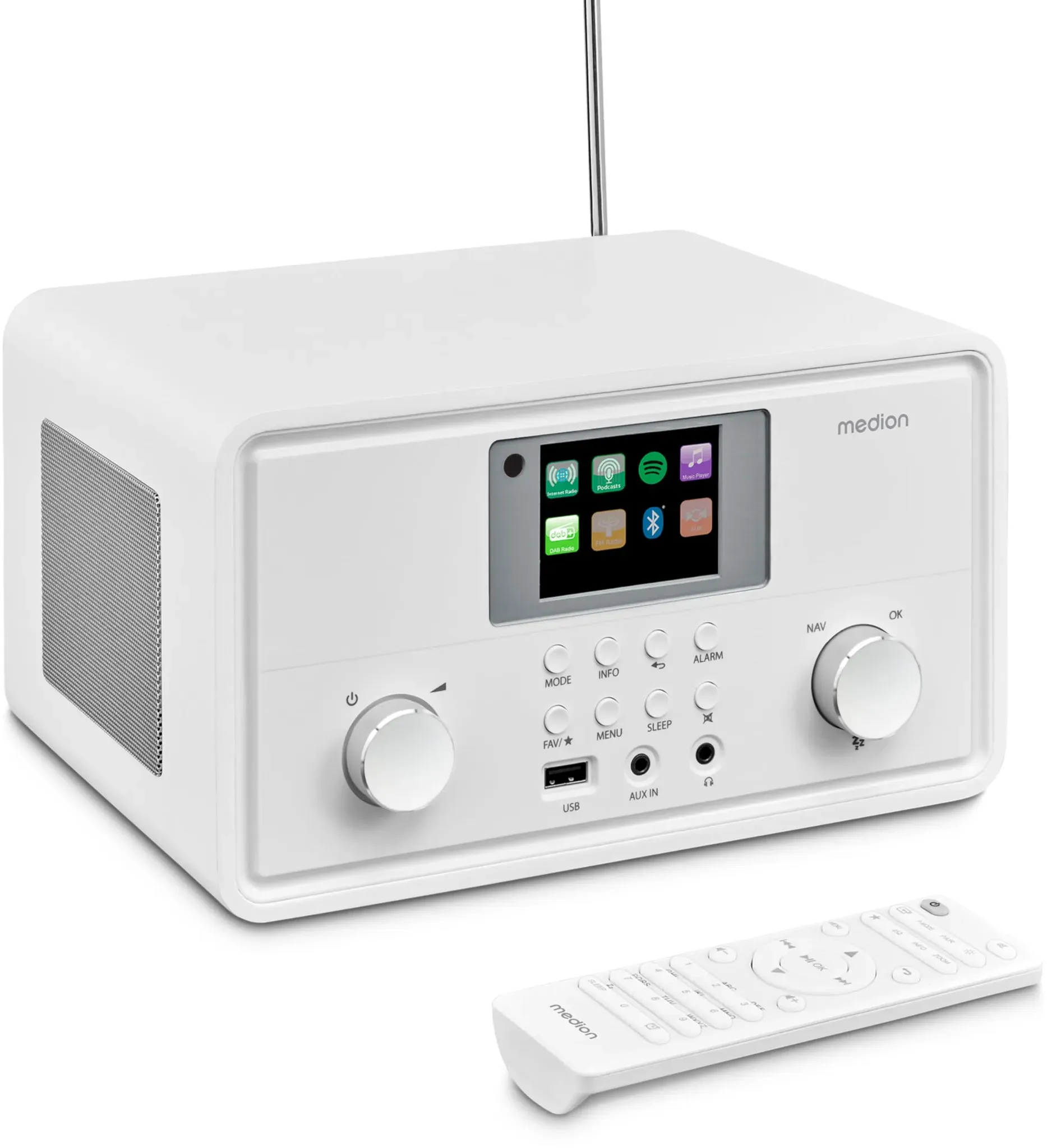 Zustand: Neu - Internet-Radios Internet Radios - MEDION - MD88069 - EAN: 4061275213430 - Stereo Internetradio mit DAB+/UKW-Radioempfang, drahtlose Anbindung durch WLAN-Technologie Empfang von über 25.000+ Internetradiosender & zahlreiche Podcasts aus aller Welt, automatischer und manueller Sendersuchlauf mit automatischer Senderspeicherung 7,1 cm (2,8€²€²) TFT-Farbdisplay (320 x 240 Pixel), Bluetooth-Wiedergabefunktion, unterstützt Spotify-Connect, MEDION LifeStream 2 APP Weckfunktion mit zwei individuell einstellbaren Weckzeiten und Schlummerfunktion (Snooze) sowie Einschlaffunktion (Sleep Timer) Lieferumfang: MEDION LIFE MD88069 P85027 Internetradio mit DAB+, Fernbedienung inkl. Batterien, Netzadapter, Bedienungsanleitung, karte - Verkäufer: Powerplatform im amazon.de Marketplace ![]() ![]() MEDION P85027 Internetradio (DAB Plus, UKW Radio, Spotify Connect, WLAN, Bluetooth, Streaming, Equalizer, Farbdisplay, USB, AUX, Wecker, Schlummerfunktion, Sleep Timer) weiß