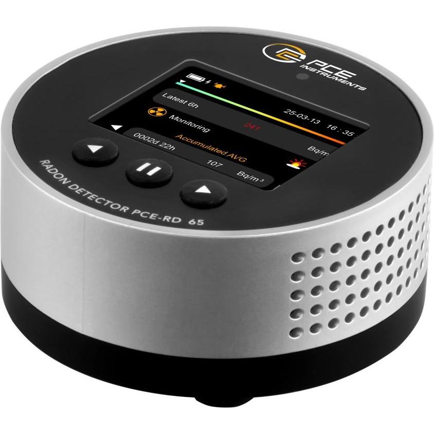 Kategorie: Temperaturmessgeräte - PCE Instruments - GTIN:4250348738295 - Der kompakte Radon Monitor bietet eine präzise und langzeitstabile Lösung zur überwachung der Radonkonzentration in Innenräumen. Er eignet sich ideal für den Einsatz in verschiedenen Umgebungen wie Wohnräumen, Büros und Laboratorien. Mit einem Messbereich von 3,3 Bq/m3 ... 37 kBq/m3 und einer Genauigkeit von ±15% ermöglicht der Radon Monitor eine zuverlässige Messung der Radonkonzentration. Der integrierte Halbleiter-Radonsensor gewährleistet eine hohe Messgenauigkeit. Das Messintervall beträgt 60 Minuten, und die Daten werden alle 6 Stunden gespeichert, was eine Langzeitdatenspeicherung von bis zu 504 Tagen ermöglicht. Der Radon Monitor zeigt Min-, Max- und AVG-Werte sowie kumulierte Mittelwerte und die Werte für 12, 24, 48 und 96 Stunden an. Zusätzlich bietet er eine akustische und optische Alarmfunktion, die im Bereich von 100 ... 800 Bq/m3 einstellbar ist. Die ersten Messwerte werden nach 6 Stunden angezeigt, und alle 6 Stunden wird ein neuer Datensatz gespeichert, wobei maximal 10 Datensätze gespeichert werden können. Das 2 Zoll-LC-Farbdisplay kann ist in einen Standby-Modus geschaltet werden, um die Betriebsdauer des Li-Ion-Akkus zu maximieren, der bei ausgeschaltetem Display bis zu 45 Tage hält. Der Radon Monitor wird zur kontinuierlichen überwachung der Radonkonzentration in Innenräumen eingesetzt, beispielsweise in Arbeitsstätten oder öffentlichen Gebäuden. Er dient der frühzeitigen Erkennung ... ![]() ![]() PCE Instruments Radon Detektor PCE-RD 50