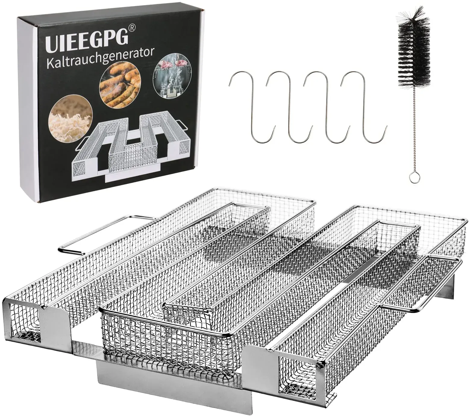 Kategorie: Grillzubehör - Tanice - Kaltrauchgenerator mit Griffen - 27.9*16.3*3.5cm (LxBxH). Edelstah Kaltrauchgenerator mit Reinigungsbürste & Räucherhaken. Leicht zu reinigen nach Gebrauch. Hochwertiger Kaltrauchgenerator - Hochwertiger 304 Edelstahl, rostfest und besonders langlebig. Der Kaltrauchgenerator kann auf jedem geschlossenen Grill verwendet werden. öffnung an einem Ende - Der Kaltrauchgenerator leuchtet auf einer Seite des Generators, es erzeugt eine moderate Menge Rauch, aber eine längere Brennzeit. Bei kaltem Rauch erzeugt das Lebensmittel (hauptsächlich Fleisch oder Fisch) beim Räuchern einen besonderen Geschmack und die Haltbarkeit ist deutlich länger. Geeignet für verschiedene Grillöfen - Geeignet für Räucheröfen, Tischraucher, Kugelgrill, BBQ Grills. Es kann zum Räuchern von Fisch Fleisch Käse usw. verwendet werden. Sehr Praktisch und multifunktional. Gebrauchsanweisungen - Füllen Sie zuerst das Gerät mit Rauchpulver. Drücken Sie dann das Rauchpulver fest mit den Fingern. Wir empfehlen die Verwendung von Rauchpulver. Die Partikelgröße sollte 0.4 mm bis 1.0 mm sein. - 16,99 Euro bei Amazon Marketplace Kitchen - gefunden von billiger.de ![]() ![]() UIEEGPG Kaltrauchgenerator aus Edelstahl, Sparbrand Kaltraucherzeuger Mit Griffen Bürste + Haken für Räuchern von Fleisch Fisch für Smoker, Räucherofen, Kugelgrill zum Kalträuchern (22.5*21.5*4.5)