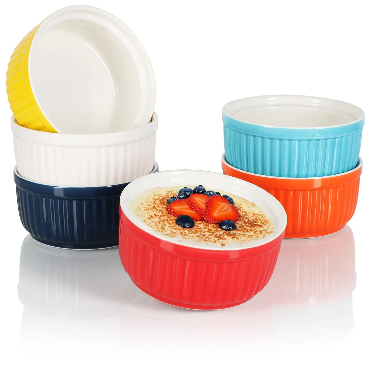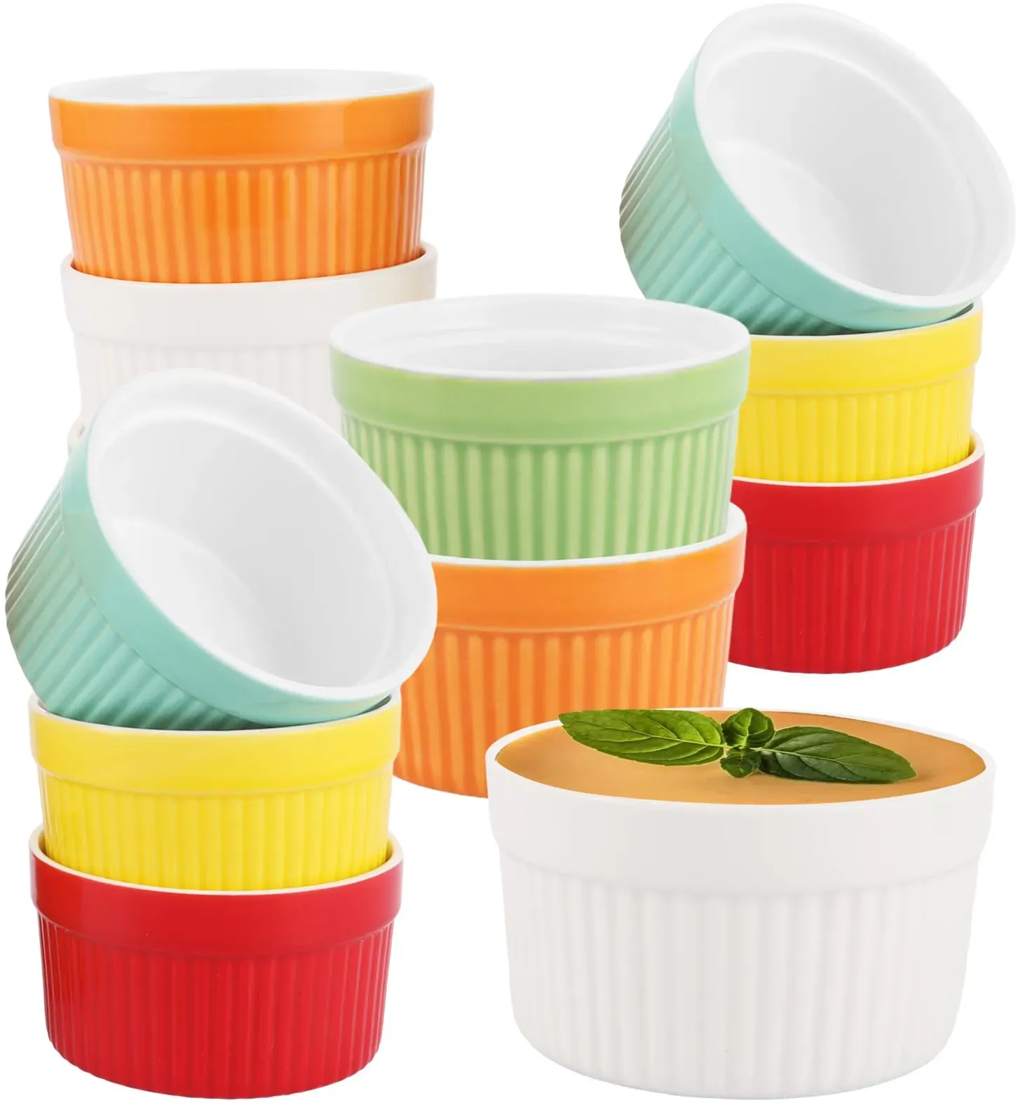 Kategorie: Schalen & Schüsseln - kzqxxt - Creme Brulee Schälchen: 4er Set Souffle Förmchen, Durchmesser: 9 cm, Höhe: 4,5 cm, Fassungsvermögen: 200 ml Hochwertige Materialien: creme brulee schälchen werden aus natürlichen Mineralien und bleifreier Glasur hergestellt, um Sicherheit und Umweltschutz zu gewährleisten. Sie ziehen kein Fett an und haben eine glatte, kratzfeste Oberfläche Vielfältige Verwendungsmöglichkeiten: Souffl -Formen eignen sich für die Herstellung aller Arten von Desserts wie Pudding, Eis, Pudding, Soßen, Marmelade und andere köstliche Desserts! Hervorragende Manövrierbarkeit: Sie können die Schale direkt aus dem Kühlschrank in den Ofen oder die Mikrowelle stellen, ohne sich Sorgen machen zu müssen, dass sie zerbricht oder Risse bekommt. Kundenservice: souffle förmchen ist aus Keramik gefertigt und wird in einem Karton geliefert. Wenn ein Schaden während des Versands auftritt, kontaktieren Sie uns bitte für eine Rückerstattung oder Ersatz! - 13,99 Euro bei Amazon Marketplace Kitchen - gefunden von billiger.de Dieses Set aus 6 farbenfrohen Keramikschalen bringt Abwechslung auf den Tisch und ist zudem ofenfest. ![]() ![]() com-four 6x Souffl fförmchen - Ragout Fin Schalen aus Keramik - ofenfeste Auflaufformen - spülmaschinengeeignete Dessert-Schälchen - farbenfrohe Keramikgefäße 250 ml