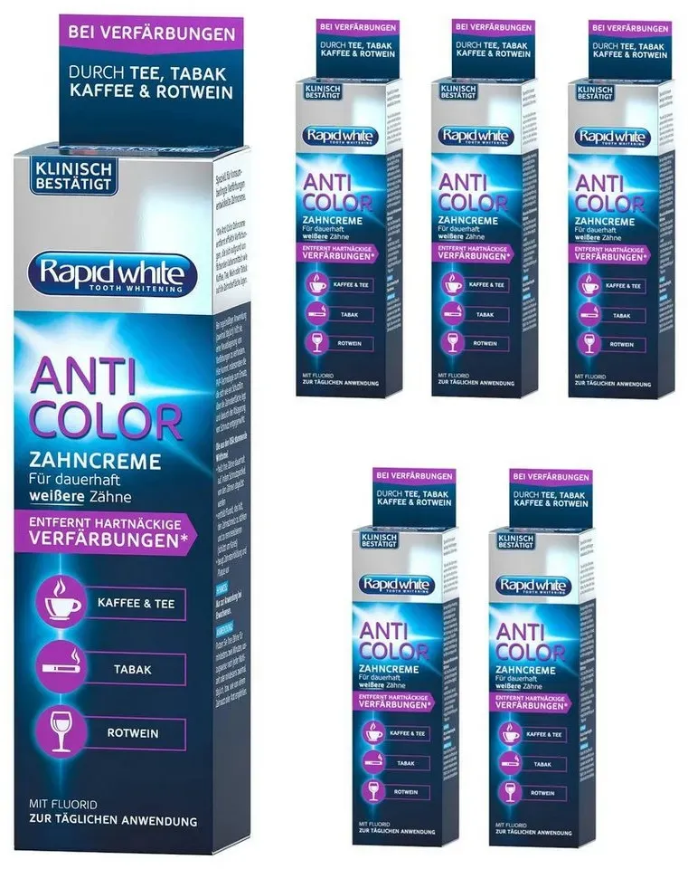 lieferbar-in 2-3 Werktagen bei dirRapid white Zahnbleaching-Paste Zahncreme Anti Color whitening Zahnpasta weißere Zähne 6 x 75 ml, Entfernt effektiv Zahnverfärbungen