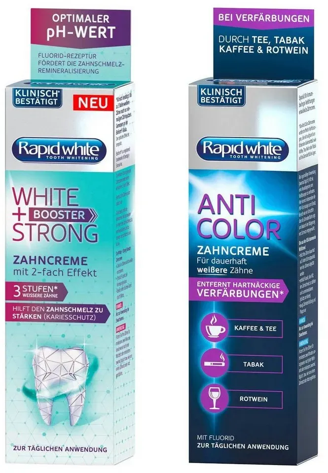 lieferbar-in 2-3 Werktagen bei dirRapid white Zahnbleaching-Kit Anti Color Zahncreme & Rapid White Strong Booster Zahncreme Set