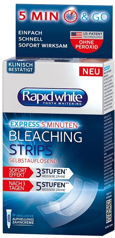 Kategorie: Zahnpflegeartikel - Rapid White - GTIN:4045612010326 - Die Rapid White Express Bleaching Strips ist zur Zahnaufhellung fr Zuhause, ohne Wasserstoffperoxid geeignet. Einfach, schnell, wirksam mit selbstauflsenden Bleaching Strips. It's time to smile. Ein Lcheln ist unumstritten die schnste Art Zhne zu zeigen. Oftmals hinterlassen jedoch Genussmittel wie Kaffee und Tee unschne Verfrbungen auf dem Zahn. Mit den Rapid White Express Bleaching Strips werden die Zhne leicht und unkompliziert im Do-it-yourself-Verfahren wieder weier. Das Set berzeugt mit seiner maximalen Performance: Bereits nach nur 4 Tagen strahlen die Zhne bis zu 5 Aufhellungsstufen weier. Eigenschaften von Rapid White Express Bleaching Strips Selbstauflsende Strips 8 Sachets (mit je 2 Bleaching-Strips) ohne Wasserstoffperoxid mit Soforteffekt Zahnaufhellung fr Zuhause Inklus - 12,31 Euro bei HAGEL-SHOP - gefunden von billiger.de Diese Bleaching Strips bieten eine sichtbare Zahnaufhellung in nur 3 Tagen und sind eine schnelle Lösung für weiÃ?ere Zähne. ![]() ![]()
