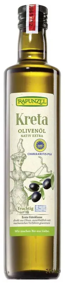 Das Rapunzel Olivenöl Kreta besteht zu 100 % aus der griechischen Sorte Koroneiki und stammt von der Insel Kreta. Diese Sorte ist bekannt für ihr intensives, fruchtiges Aroma und wird oft als 'flüssiges Gold' bezeichnet. Das Öl eignet sich besonders für Salate, Antipasti und kalte Speisen. Es sollte nicht stark erhitzt werden, da es durch die Kaltpressung empfindlich ist. Das Rapunzel Olivenöl Kreta wurde mehrfach von Öko-Test ausgezeichnet und zuletzt als Testsieger mit 'sehr gut' bewertet. Auch bei Kunden ist es sehr beliebt, mit durchschnittlich 5 von 5 Sternen in Bewertungen. ? Beliebte Produktmerkmale