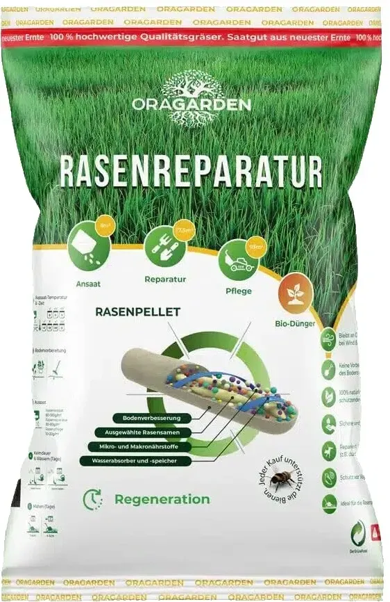 EAN: 4262391384152 - Die Oragarden Rasenpellets Regeneration Plus, bestehen aus bestem Saatgut, natürlichem Dünger und nützlichen Mikroorganismen. DerDünger versorgt das Saatgut mit wichtigen Nährstoffen und beschleunigt das Wachstum des Rasens, während derAktivator dem Boden Mikroorganismen beschert, diese verbessern die allgemeine Qualität der Erde. Diese Vorteile kommen auch den Pflanzen, die in der Nähe der Pellets wachsen, zu gute. Sie bekommen also nicht nur einen schönen, grünen und dichten neuen Rasen, sondern auch eine generelle Verbesserung Ihres Bodens.ProduktmerkmaleUnsere hochwertigen Rasensamen sind von einer Schutzschicht aus Lehm und Stärke ummantelt. Diese Veredelung des Saatgutes bringt eine Reihe von Vorteilen mit sich:Hochwertige Rasensorten. Wir bieten Ihnen ausschließlich Saatgut bester Qualität aus der letzten Ernte.Saatgutveredelung der etwas anderen Art. Dank der speziellen Beschichtung aus Lehm und Stärke ist die Aussaat sehr einfach und bequem, hinzukommt, dass der Samenverlust durch die Schutzschicht minimiert wird. Außerdem haben die Pellets eine höhere Keimrate im Vergleich zu nacktem Saatgut.Natürliche Zusatzstoffe mit maximaler Wirkung. Das Saatgut in Kombination mitZusatzstoffen und dem Bodenaktivator führt zu besten Ergebnissen. - bei kaufland.de - aus Yadore Produktdaten Dieses Veddelholzer Garten Angebot ist eine ausgezeichnete Wahl für alle, die einen dürreresistenten und widerstandsfähigen Rasen auf größeren Flächen wünschen. ![]() ![]() Veddelholzer Garten Rasenpellets Dürreresistenter Rasen - Rasensamen für robusten und widerstandsfähigen Rasen - Grassamen für 240 m2 zur Einsaat und Nachsaat - Samen geeignet für Schattenrasen