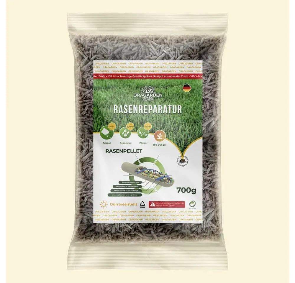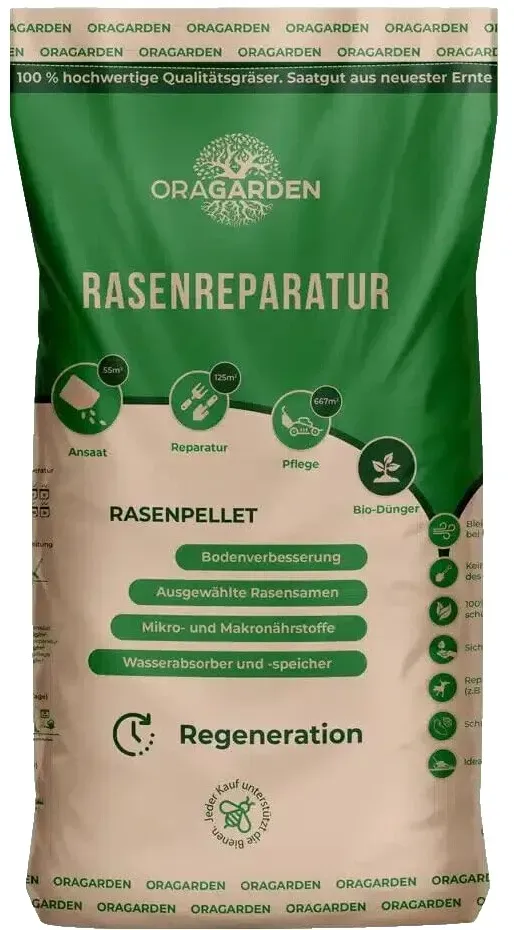 Kategorie: Pflanzensamen - oragarden - Eigenschaften: Rasenpellets sind Samen zur Nachsaat von Wiesen, welche von einer Schutzschicht aus Mineralien, Stärke und Lehm umhüllt sind. Die Pellets werden durch ihr relativ hohes Gewicht nicht von Wind oder Wasser weggetragen. Zudem sind Sie vor Tierfraß geschützt. Für Rasensaat ist für Böden jeder Art geeignet. Optimale Nährstoffversorgung: In der Hülle aus Lehm und Stärke, sind bereits alle wichtigen Nährstoffe vorhanden, die der Rasensamen zum Keimen benötigt. Dadurch hat der Anwender einen planbaren Keim- und Wachstumserfolg. Alle verwendeten Rohstoffe sind natürlich und ungiftig. Die ummantelten Rasensamen sind frei von Gentechnik. Vorteile: Durch die Ummantelung, sind die Rasensamen, schnellkeimend. Die Rasensaat ist nach dem Pelletierprozess, langanhaltend geschützt, auch nach der Wasseraufnahme. Wir können jede Art von Rasensamen, ob Rasensamen dürreresistent, Rasensamen Schatten oder Spiel und Sport Rasensamen, pelletieren. So haben Sie Rasenpellets für jede mögliche Anwendung. Umweltfreundlich: Das Pelletieren der Rasensamen ist ein schonender Herstellungsprozess. Durch die hohe Ergiebigkeit muss weniger Rasensaat verwendet werden. Die Pellets sind umweltfreundlicher als Rasensamen mit Dünger. Anwendungsbeispiele: Die Rasensaat von Green Edge wird einfach auf der entsprechenden Fläche ausgesät. Es sind weder Vor-, noch Nachbereitung erforderlich. Auch Unebenheiten spielen keine Rolle. Rasensaat wird bis zum ersten Mähen ... Dieses umfangreiche Paket ist perfekt für große Flächen und bietet ummantelte Rasenpellets für schnelle Keimung und Robustheit. ![]() ![]() Neu OraGarden ummantelte Rasenpellets Regenerationsrasen für Schnellkeimenden Rasensamen für Robusten und Widerstandsfähigen Rasen (10 kg)