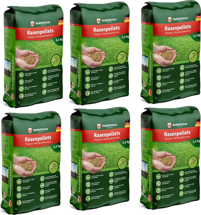Kategorie: Pflanzensamen - Veddelholzer - GTIN:8720165908110 - Vielfältig und Hitzeresistent: Die Rasensamen Spezialmischung eignet sich optimal zur kompletten Neuanlage sowie gezielten Nachsaat bei trockenen bis extrem trockene Böden. Ideal für lange Trockenphasen dank bis zu 2,5 Meter tiefer Wurzeln. Schützt Rasen vor dem Austrocknen. Rundum robust: Die Lehmmatrix Ummantelung der Grassamen ist enorm widerstandsfähig. Insekten und Vögel meiden die Pellets. Hunde-Urin wird unbeschadet abgewehrt. Keine Verwehung durch Wind und kein Wegschwimmen durch Regen oder Bewässerung. Effiziente Saat: Sparen Sie bis zu 85 % Samenmenge. 6 Pakete, insgesamt 7,2 kg für ca. 240 m2. Die Pellets überzeugen durch ihre Wirksamkeit gegenüber herkömmlichen Gras- und Rasensamen. Kein unnötiger Verlust durch Vogelfraß, Regen oder Wind. Sparen Sie Zeit, Aufwand & Kosten: Für die Einsaat oder Nachsaat benötigen Sie keine Vor- oder Nachbereitung des Gartens. Sparen Sie sich zudem Werkzeuge zum Verstreuen. Grassamenpellets können kinderleicht per Hand ausgeworfen werden. Gesundes Wachstum: Die Pellets können kinderleicht per Hand ausgeworfen werden und liefern den verschiedenen Grassamen wichtige Nährstoffe. Für eine verlässliche Keimung sollten die Temperaturen dauerhaft über 10 Grad liegen. Kalte Nächte können die Keimung verzögern. - 75,95 Euro bei Amazon Marketplace Lawn & Garden - gefunden von billiger.de Ein hochwertiges Produkt von Veddelholzer Garten, das speziell für die Regeneration und Robustheit des Rasens auf größeren Flächen konzipiert ist. ![]() ![]() Veddelholzer Garten Rasenpellets Regeneration Rasen - Rasensamen für robusten und widerstandsfähigen Rasen - Grassamen für 240 m2 zur Einsaat und Nachsaat - Samen geeignet für Schattenrasen