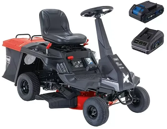 Kategorie: Rasentraktoren - SCHEPPACH - GTIN:4046664252818 - # Kraftvoll & flexibel: Der Scheppach MR230-61 mit Hybrid-Startsystem Der Scheppach Benzin-Aufsitzrasenmäher MR230-61 kombiniert hohe Leistung mit maximaler Flexibilität. Mit einer Schnittbreite von 61 cm und einem starken 4-Takt-Benzinmotor (6,0 PS ) meistert er große Rasenflächen bis 2.600 m2 effizient und mühelos. Dank vier Vorwärts- und einem Rückwärtsgang lässt er sich komfortabel manövrieren selbst in engen Passagen. # Hybrid-Startsystem: Einfach & zuverlässig starten Das Hybrid-Startsystem bietet zwei Startmöglichkeiten: per Elektro-Start (Akkukit inklusive ) für eine bequeme, mühelose Inbetriebnahme oder per Seilzugstarter als zuverlässige Alternative, wenn der Akku leer ist. So bleibt der Mäher jederzeit einsatzbereit, ohne komplizierte Neustarts oder lange Wartezeiten. Ideal für Gartenbesitzer, die Wert auf Komfort und Zuverlässigkeit legen! # Scheppach IXES 20V Für maximale Flexibilität in all Ihren Projekten! Dieser Artikel ist Teil des Scheppach IXES 20V Akkusystems (Intelligent Exchange Series). Die umfangreiche Produktpalette umfasst mehr als 50 Geräte für Haus, Garten und Werkstatt, die alle kabellos mit Energie versorgt werden und das mit nur einem einzigen Akku! Profitieren Sie vom einfachen Wechsel zwischen verschiedenen Maschinen sowie flexiblem Arbeiten ganz ohne Kabelsalat. Die leistungsstarken Lithium-Ionen-Akkus der neuesten Generation sorgen für Zuverlässigkeit und Langlebigkeit. Das ... Der ALPINA-GARDEN AT2 66 QA für 1657.95 Euro ist ein kompakter Rasentraktor mit STIGA Motor, ideal für kleinere bis mittlere Gärten. ![]() Rasentraktor ALPINA-GARDEN AT2 66 QA , schwarz, B:120cm H:108,5cm L:148cm, Rasentraktoren, mit 224 cm³ STIGA Motor