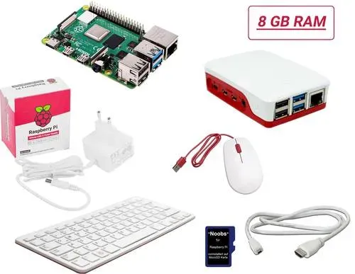 Verfügbarkeit: Auf Lager - Kategorie: Sonstige Komponenten - BerryBase - GTIN:4251266703808 - Das Raspberry Pi 4 8GB Ram Elementary Kit besteht aus dem Raspberry Pi 4 8GB, dem offiziellen schwarzen USB Type C Netzteil und einem 4-teiligen Kühlkörperset. - 107,90 Euro bei Amazon Marketplace CE - gefunden von billiger.de Dieses "All-In-Bundle" von reichelt bietet ein Raspberry Pi 4 B 8GB mit umfassendem Zubehör für einen sofortigen Start. ![]() ![]() RPI 4B 8GB ALLIN - Das reichelt Raspberry PI 4 B 8 GB All-In-Bundle