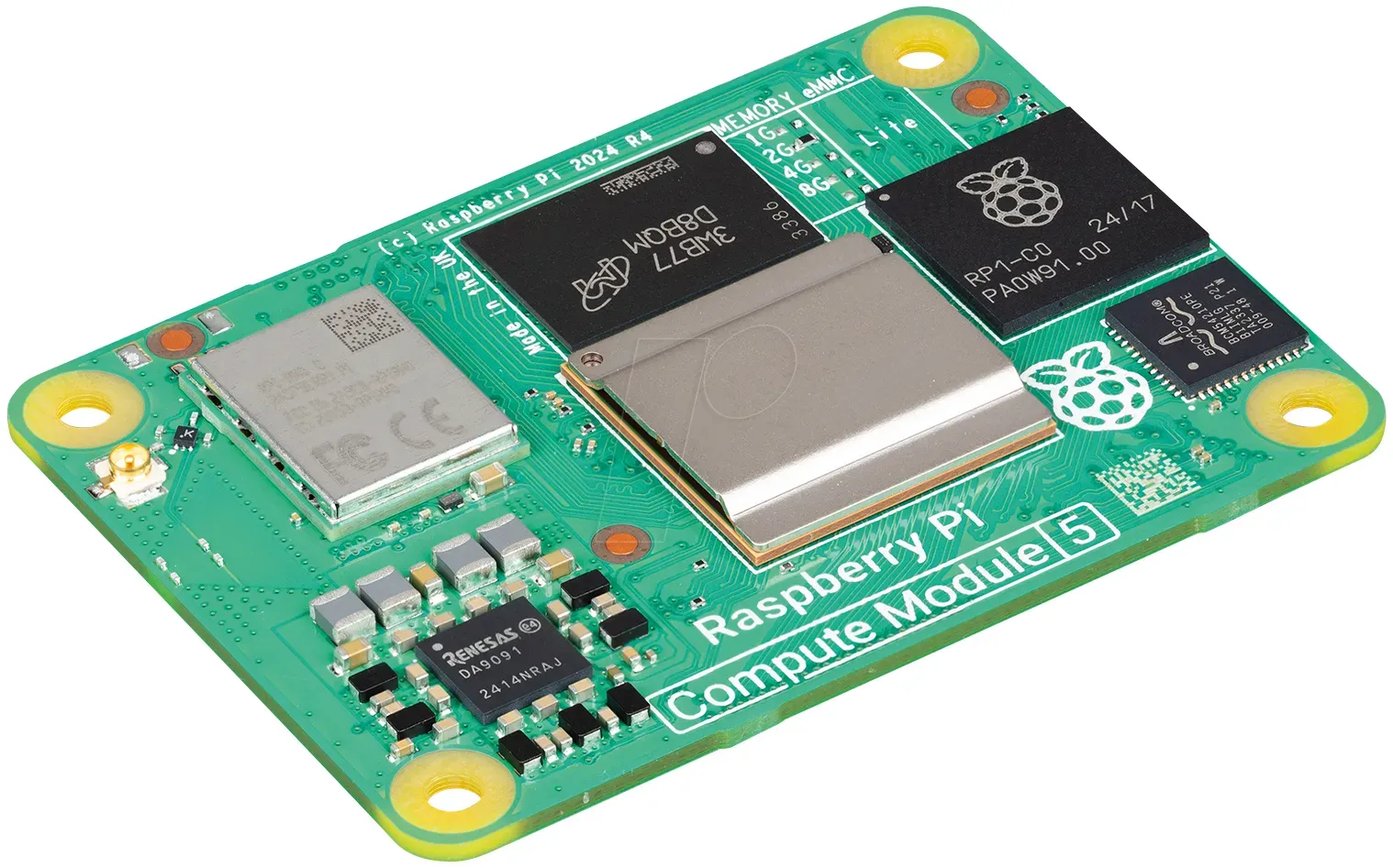 Verfügbarkeit: ab Lager - Kategorie: Sonstige Komponenten - Raspberry - GTIN:5056561805450 - Das Raspberry Pi Compute Module 5 (CM5) bringt die Leistung des Raspberry Pi 5 in die Compute Module Familie. Wie bei den bestehenden Mitgliedern der Compute Module Serie bietet das CM5 verschiedene eMMC-Speicheroptionen (von 0 GB (Lite) bis zu 64 GB) sowie unterschiedliche DRAM-Kapazitäten (2 GB, 4 GB, 8 GB und erstmals 16 GB). verfügbar mit eMMC-Speicher von 0 GB (Lite) bis 64 GB DRAM-Optionen: 2 GB, 4 GB, 8 GB und 16 GB Wireless- und Non-Wireless-Varianten verfügbar gleiche Namensschema wie beim Compute Module 4 Das Compute Module 5 erweitert die Flexibilität der Serie mit verbesserter Speicher- und Leistungskapazität. Die Varianten bieten für unterschiedliche Anforderungen die Möglichkeit, zwischen Wireless- und Non-Wireless-Modellen sowie verschiedenen Speichergrößen zu wählen. Das bekannte Namensschema des Compute Module 4 wird beibehalten, um eine einfache Identifikation und Integration in bestehende Systeme zu ermöglichen. Fazit: Das Raspberry Pi Compute Module 5 bietet erhebliche Verbesserungen in Leistung und Speicheroptionen und eignet sich für Entwickler, die die Rechenleistung des Raspberry Pi 5 in modularen Embedded-Systemen nutzen möchten. - 158,60 Euro bei reichelt.de - gefunden von billiger.de Ein Compute Modul 5 mit 16GB RAM, 64GB eMMC und WLAN, das maximale Speicherkapazität und drahtlose Konnektivität bietet. ![]() ![]() RPI CM5W16GB64GB - Raspberry Pi Compute Modul 5, 16GB RAM, 64GB eMMC, WLAN