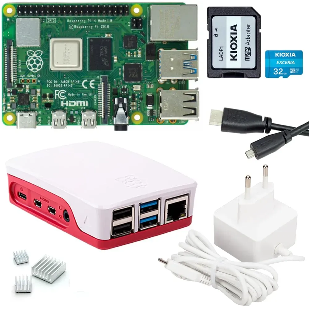 Auf Lager Versand durch AmazonRaspberry Pi 4 4GB Starter-Set | 64GB SD Karte | USB-C Netzteil 15W | Gehäuse | 4K Micro HDMI Kabel | Kühlkörper Set | Raspberry Pi 4 Model B 4GB RAM