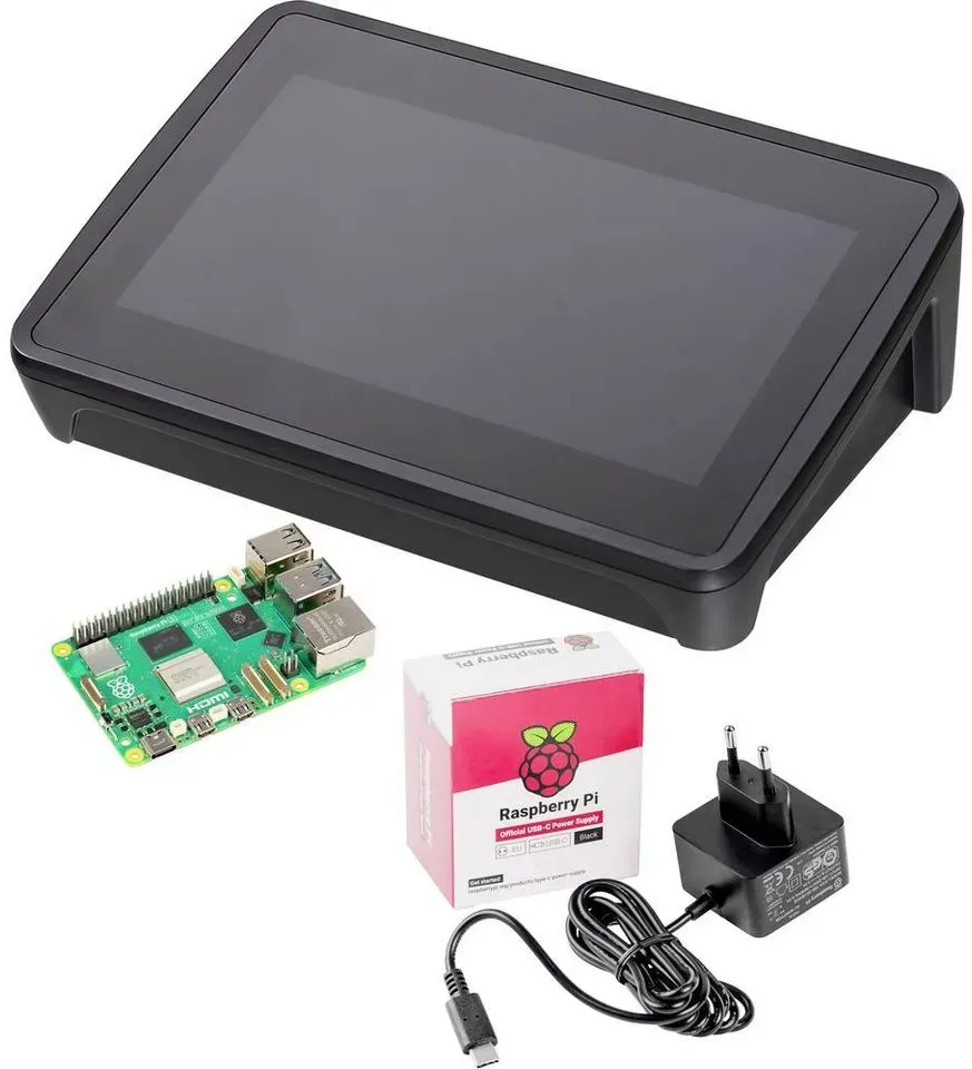 Desktop-Speicher Gesamtsortiment IT + Multimedia Drohnen + Elektronik Robotik + Elektrotechnik Entwicklungsboard + Kit RAM - EAN:4064161407906 - Das Desktop Kit bildet die perfekte Basis für Ihren Raspberry Pi 5 B. Es enthält das benötigte Zubehör, um Ihren PC in Kreditkartengrösse in Betrieb zu nehmen, sowie sinnvolle Erweiterungen, um sofort ohne weiteres Zubehör starten zu können. Der Raspberry Pi 5 B ist die leistungsstarke Weiterentwicklung des extrem erfolgreichen Rechensystems in Kreditkartengrösse. Die fünfte Generation des Raspberrys wurde mit einem rechenstarken ARM Cortex-A76 Quad-Core-Prozessor mit 4x 2,4 GHz ausgestattet. Durch dieses Upgrade liefert Ihnen der Raspberry Pi 5 B in bestimmten Anwendungen deutlich mehr Leistung. Für eine schnelle und einfache Vernetzung sind WiFi, Bluetooth Low Energy und Gigabit-LAN an Bord. Das originale Raspberry Pi Tastatur- und Maus-Set besticht durch sein elegantes Design und seine hohe Verarbeitungsqualität. Mit der Raspberry Pi Tastatur statten Sie Ihren Einplatinen-PC mit drei zusätzlichen USB-Schnittstellen aus, ideal für zusätzliche Mäuse, USB-Sticks und mehr. Dank der 32 GB microSD-Karte (Class 10) haben Sie bereits sieben verschiedene Betriebssysteme vorinstalliert, die per Menü ausgewählt werden können. Das originale Raspberry Pi Gehäuse bietet der Platine den nötigen Schutz vor äusseren Einflüssen und ermöglicht Zugriff auf die Schnittstellen. Die Stromversorgung übernimmt ein USB-C Netzteil mit 5000 mA ... Das "Pro Set" bietet eine erweiterte Ausstattung mit Netzteil, Gehäuse, Kühlkörper und HDMI-Kabel für anspruchsvollere Anwender. ![]() ![]() TRU COMPONENTS Pro Set Raspberry Pi® 5 B 16 GB 2.4 GHz inkl. Netzteil, inkl. Gehäuse, inkl. Kühlkörper, inkl. HDMI?-Kab