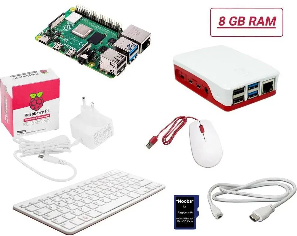 Kategorie: Sonstige Komponenten - smart-home-komponente - GTIN:4260681753251 - Raspberry Pi 5 8GB Quad-core ARMA76 (64 Bits - 2,4 GHz) Argon ONE V3 M.2 NVME PCIE Raspberry Pi 5 Netzteil (5,1V / 5A) 27W schwarz Es wird eine SSD M.2 NVME mit M-Key benötigt. Diese sind von 250 GB bis hin zu 4 TB verfügbar. (nicht im Lieferumfang enthalten) - 154,90 Euro bei Amazon Marketplace CE - gefunden von billiger.de Dieses Desktop Kit ist ein Komplettpaket mit Tastatur, Maus, OS, Netzteil und Gehäuse, ideal für Nutzer, die sofort loslegen möchten. ![]() ![]() Raspberry Pi Desktop Kit 5 B 8GB 4 x 2.4GHz inkl. Tastatur, inkl. Maus, inkl. Noobs OS, inkl. Netz, Entwicklungsboard + Kit