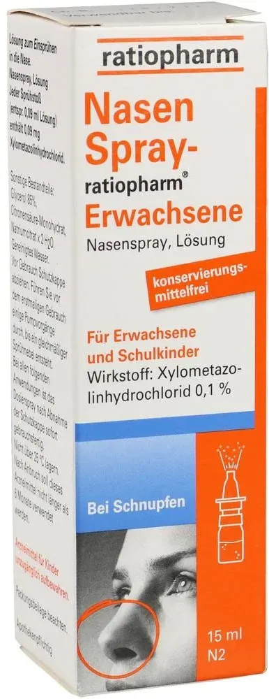 Verfügbarkeit: Lieferbar in 1-2 Werktagen - 210,67 €/l - Kategorie: Arzneimittel - Ratiopharm - GTIN:4150009998481 - PZN:00999848 - NasenSpray ratiopharmNasenSpray ratiopharm €“ sanfte Hilfe bei verstopfter NaseDas NasenSpray ratiopharm bietet eine bewährte Unterstützung bei Beschwerden im Zusammenhang mit Schnupfen und Erkältung. Entwickelt für Erwachsene und Schulkinder ab sechs Jahren, fördert dieses Nasenspray das Abschwellen der Nasenschleimhaut. Auf diese Weise wird das Atmen erleichtert und der Schleimabfluss unterstützt. Das frei von Konservierungsstoffen angebotene Spray ist besonders für Menschen mit empfindlicher Nase geeignet, die sanfte Lösungen bevorzugen.Anwendungsgebiete von NasenSpray ratiopharmNasenSpray ratiopharm ist vielseitig einsetzbar:Erkältungsschnupfen: Verwendet bei verstopfter Nase und häufigem Niesen, erleichtert es das freie Durchatmen.Allergischer Schnupfen: Bei Heuschnupfen oder anderen allergischen Reaktionen kann es Fließschnupfen oder eine verstopfte Nase lindern.Nasennebenhöhlenentzündungen: Unterstützt den Sekretabfluss aus den Nasennebenhöhlen und lindert Druckgefühle im Gesicht.Katarrh des Tubenmittelohrs: Erleichtert den Abfluss von Sekreten im Mittelohr bei Schnupfen.NasenSpray ratiopharm Wirkstoffe und WirkweiseDer primäre Wirkstoff von NasenSpray ratiopharm ist Xylometazolin, ein Alpha-Sympathomimetikum. Es wirkt auf die Blutgefäße der Nasenschleimhaut, was die Abschwellung und somit das Atmen erleichtert. ... Dieses Angebot ist das günstigste für das konservierungsmittelfreie Nasenspray für Erwachsene und somit eine Top-Empfehlung für Sparfüchse. ![]() ![]() NASENSPRAY-ratiopharm Erwachsene kons.frei 15 ml