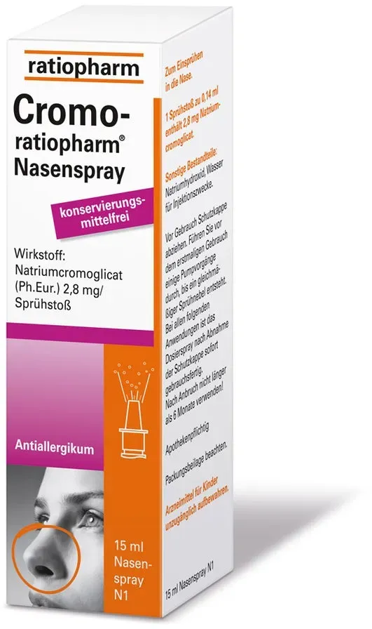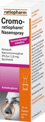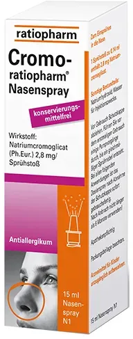 Verfügbarkeit: 1-3 Werktage - 399,33 €/l - Kategorie: Arzneimittel - Ratiopharm - GTIN:4150049526194 - PZN:04952619 - Wichtige Hinweise (Pflichtangaben): Cromo-ratiopharm® Nasenspray . Wirkstoff: Natriumcromoglicat. Anwendungsgebiete: Ganzjährige und saisonale allergische Rhinitis. Zu Risiken und Nebenwirkung... - 5,99 Euro bei Mycare - gefunden von billiger.de Ein Standardangebot für NasenSpray-ratiopharm Erwachsene, das schnell und effektiv die verstopfte Nase befreit. ![]() ![]() NasenSpray-ratiopharm Erwachsene: Befreit schnell und effektiv die verstopfte Nase, 15 ml