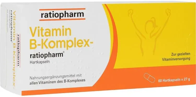 Kategorie: Nahrungsergänzungsmittel - Ratiopharm - GTIN:4150041327508 - PZN:04132750 - Nahrungsergänzungsmittel sind kein Ersatz für eine ausgewogene, abwechslungsreiche Ernährung und gesunde Lebensweise. Wirkstoffe: Thiamin Pyridoxin Pantothensäure Riboflavin Niacin Cyano... - 12,98 Euro bei Mycare - gefunden von billiger.de Ein günstiges Angebot für die 60-Stück-Packung von Shop Apotheke DE, einem großen Online-Anbieter. ![]() ![]() Vitamin B-KOMPLEX-ratiopharm Kapseln 60 St