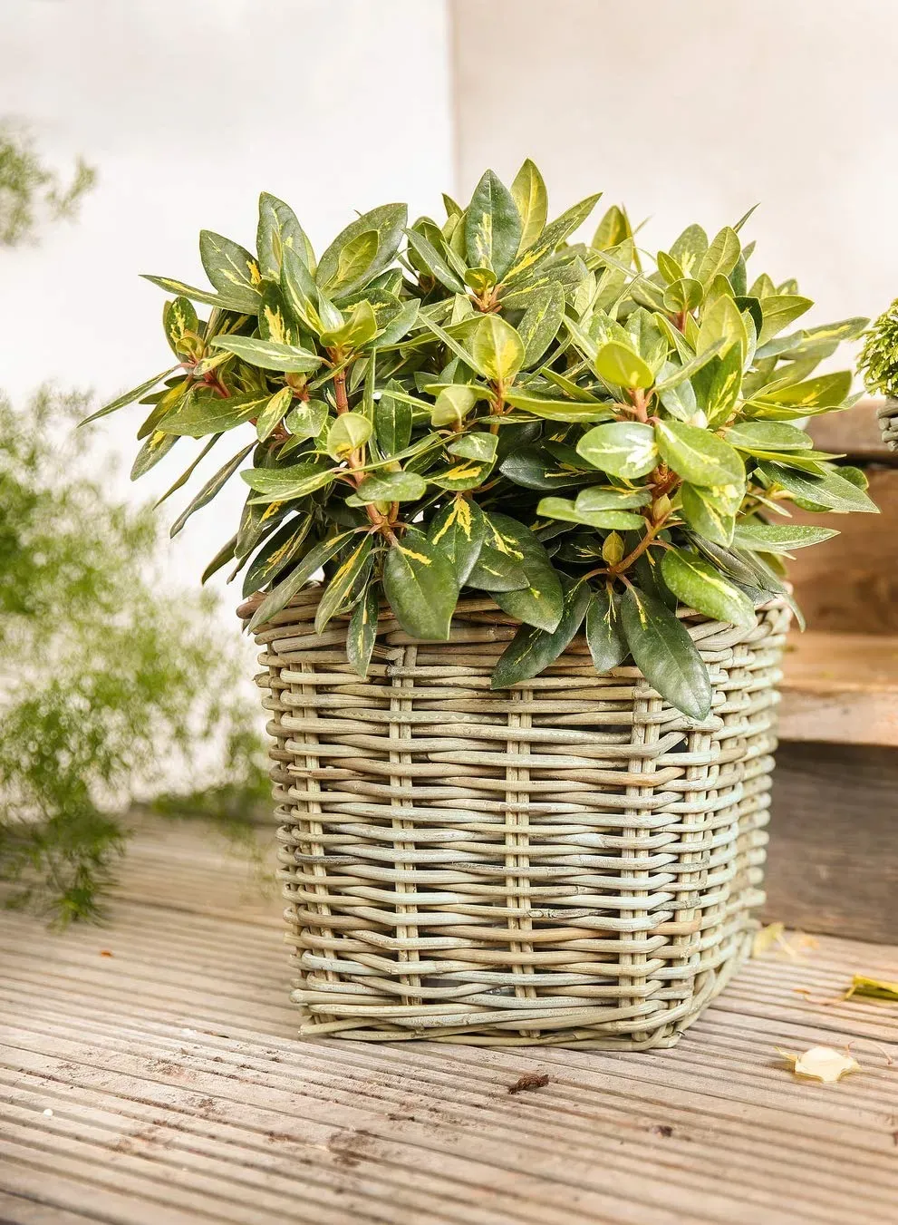 Kategorie: Blumentöpfe - Dekoleidenschaft - GTIN:4260482666095 - Pflanzkorb 'Rattan', groß, in trendiger Optik mit seitlichen Griffen Dezent grau gekalktes Rattan stabil verflochten Mit Folie ausgeschlagen, zum direkten Bepflanzen geeignet Maße ca.: 40 x H 30 cm Lieferung ohne Pflanze und Deko - 29,95 Euro bei Amazon Marketplace Home - gefunden von billiger.de ![]() ![]() Dekoleidenschaft Pflanzkorb Rattan rund, groß, 40x30 cm, grau gekalkt, Blumentopf, Pflanztopf, Pflanzkübel für Draußen, Blumenkübel