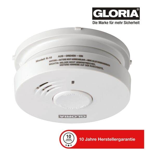 Auf Lager Versand durch AmazonGloria Rauchwarnmelder R-10 mit 10 Jahren Garantie und fest eingebauter Lithium Batterie