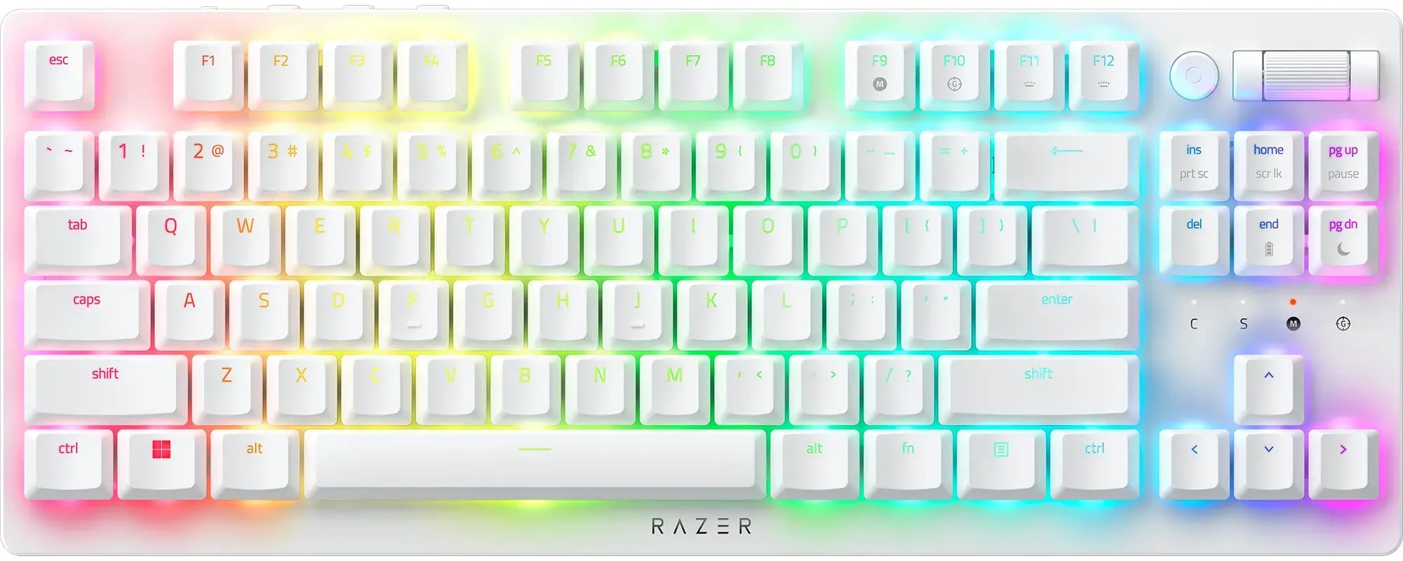 Kategorie: Tastaturen - Razer - GTIN:8886419348283 - Verbindung per Bluethooth, USB-C oder 2,4Ghz Wireless / Flache optische Switches von RazerTM / Fünf onboard Profile / Kabellose RazerTM HyperSpeed Technologie - 149,90 Euro bei notebooksbilliger - gefunden von billiger.de Ein attraktives Angebot für die Tenkeyless-Version mit roten Switches, perfekt für Nutzer, die eine kompakte und reaktionsschnelle Tastatur suchen. ![]() Razer DeathStalker V2 Pro Tenkeyless (Red Switch) - Kabellose Optische Low-Profile-Gaming-Tastatur (