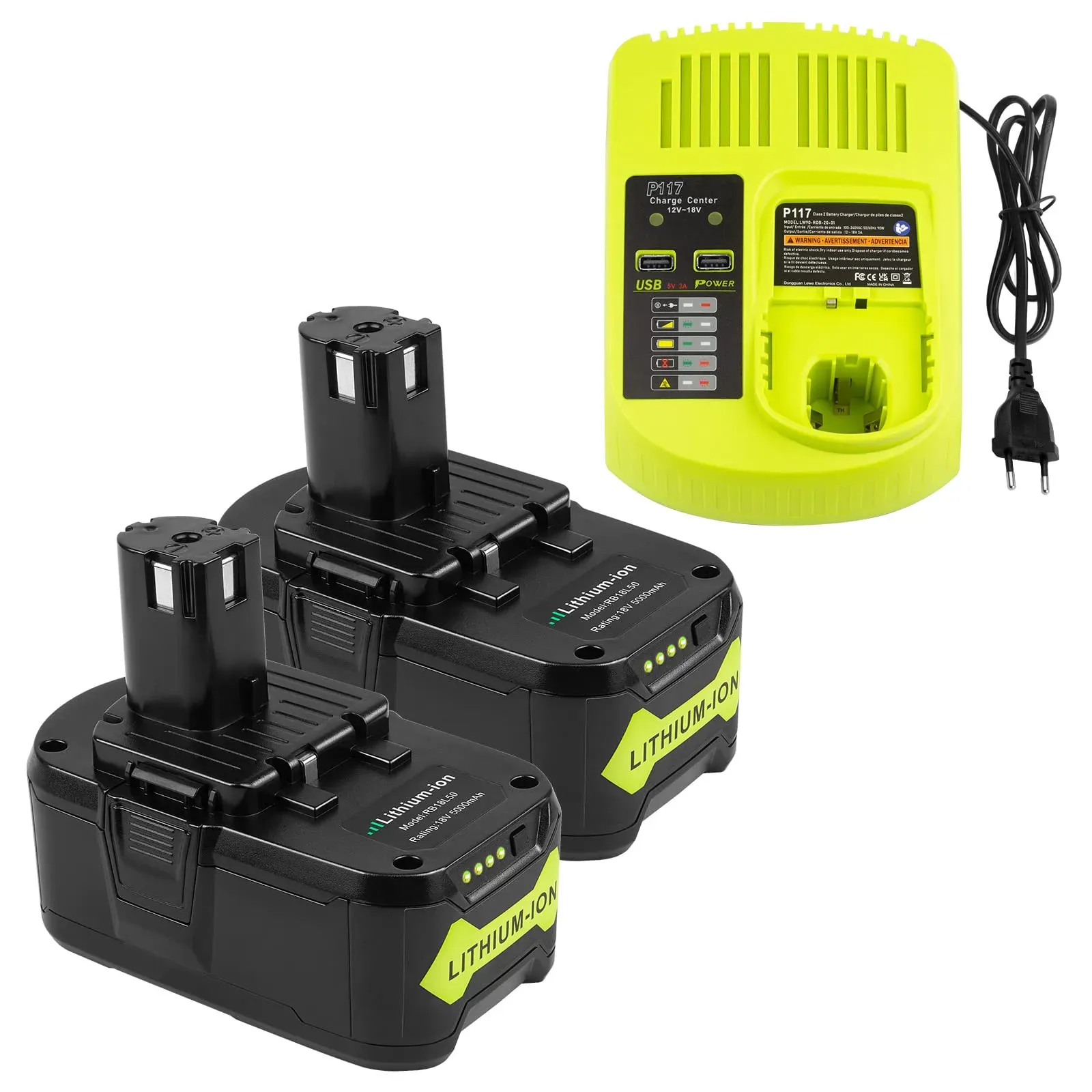 Auf Lager Versand durch Amazon2pcs RB18L50 18V 5,000mAh Ersatzakku für ryobi Akku 18V RB18L50 RB18L40 RB18L25 RB18L15 RB18L13 mit LED-Anzeige
