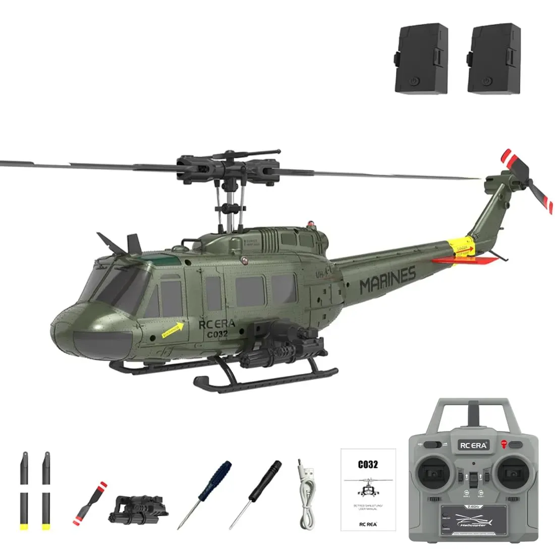Auf Lager Versand durch AmazonNBJIALIN RC ERA C032 UH-1 Huey Helikopter - Ferngesteuerter Hubschrauber für Erwachsene, 1/48 Sacle 2.4G 6CH Gyro Stabilized Aircraft with Altitude Hold & Optical Flow,3D Stunt Drone (Grün)