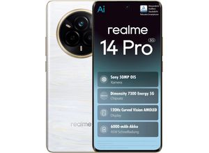 keine Angabe Nur noch 11 auf Lagerrealme 14 Pro 5G Smartphone 12+512GB,Pearl White, 6.72 Zoll gebogener Bildschirm, 120Hz Display, 45W SuperVOOC, 5130mAh Akku, 50MP Kamera, Dimensity 7300 Energy, IP69