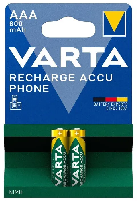 Kategorie: Batterien & Akkus - Varta - GTIN:4008496330867 - Die VARTA Recharge Accu Phone AAA 800 mAh 2er-Pack Batterien sind zuverlässige, langlebige NiMH-Akkus, die speziell für schnurlose Telefone entwickelt wurden. Sie unterstützen bis zu 1000 Ladezyklen, besitzen keinen Memory-Effekt und bieten Schutz vor überladung und Tiefentladung ideal für Marken wie Philips, Siemens, Panasonic und viele mehr. - 6,49 Euro bei Joybuy - gefunden von billiger.de Mit 6.57 Euro für zwei Varta Akkus Recharge Accu Phone Micro AAA ist dies ein sehr preiswertes Angebot. ![]() ![]() 2 Varta - Akkus Recharge eBay Accu Phone Micro Aaa 800 Mah 58398101402 (4008496330867)