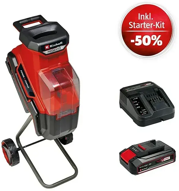 Kategorie: Häcksler - Einhell - GTIN:4006825671384 - Die Produktinformationen zu den Einzelprodukten entnehmen Sie bitte den unten verlinkten Einzelartikeln. Hinweis: für die Verwendung des Gerätes werden 2 x 18V Akkus benötigt. # Einhell Power X-Change 18V kabellose Freiheit mit nur einem Akku Dieser Artikel ist Teil des Einhell Power X-Change 18V Akkusystems. Das System erlaubt es, mehr als 300 Akku-Geräte , ob Elektrowerkzeuge oder Gartengeräte, mit ein und demselben Akku zu betreiben. Vom allseits bekannten Akkuschrauber über die Stichsäge bis hin zum Rasenmäher ist mittlerweile eine Vielzahl an Werkzeugen als kabelfreie Akkuvariante verfügbar. Die Vorteile liegen auf der Hand: Unabhängig von Steckdosen und Kabeltrommeln arbeitet es sich leichter, mit dem Akkugerät ist man voll mobil. Zudem muss nicht mehr auf ein Sammelsurium verschiedenster Akkus und Ladegeräte zurückgegriffen werden. Die Power X-Change Akkus sind das Herzstück der Plattform. Darum werden in den Akkus nur die besten Komponenten wie leistungsstarke Li Ion Zellen neuster Generation und eine intelligente prozessorgesteuerte Akku-Elektronik , das Active Battery Management System, verwendet. Das macht den PXC-Akku zu einem der sichersten der Branche und sorgt zusätzlich für Effizienz, Zuverlässigkeit und Langlebigkeit. # Angebote & Aktionen # +++ *Aktion 02.10.-29.11.2025: PXC Starter-Kit für 15 statt 29,95 beim Kauf eines PXC Geräts +++ Legen Sie dieses Einhell Power X-Change Maschinen-Set in den ... Dieses Angebot von OTTO ist ein umfassendes Paket mit dem Einhell Messerhäcksler REDAXXO 36/25 inklusive 2 Akkus und 2 Ladegeräten. ![]() ![]()
