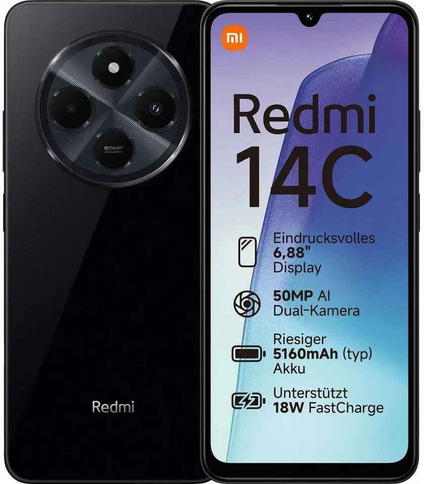 15 Händlerangebote bei billiger.de - Kategorie: Handys ohne Vertrag - Xiaomi - Das Redmi 14C ist das neueste Mitglied der Redmi-Serie und bietet eine Mischung aus beeindruckender Leistung und elegantem Design. Es verfügt über ein grosses 6,88-Zoll-Display mit einer adaptiven Bildwiederholrate von bis zu 120 Hz für eine flüssige und lebendige Darstellung perfekt für Streaming und Spiele. Das elegante, raffinierte Design des Geräts wird durch eine leistungsstarke 50-MP-KI-Dual-Kamera für hochwertige Fotos, auch bei schlechten Lichtverhältnissen, und eine 13-MP-Selfie-Kamera ergänzt. Der 5160-mAh-Akku mit 18-Watt-Schnellladefunktion und der effiziente MediaTek Helio G81-Ultra-Octa-Core-Prozessor machen das Redmi 14C zu einer vielseitigen Wahl für den täglichen Gebrauch und sorgen für lang anhaltende Leistung und nahtloses Multitasking. - GTIN:6941812798423 Für 132.08 Euro bietet ElectroSmartEU über Amazon Marketplace ein solides Angebot in der Farbe Midnight Black. ![]() ![]()