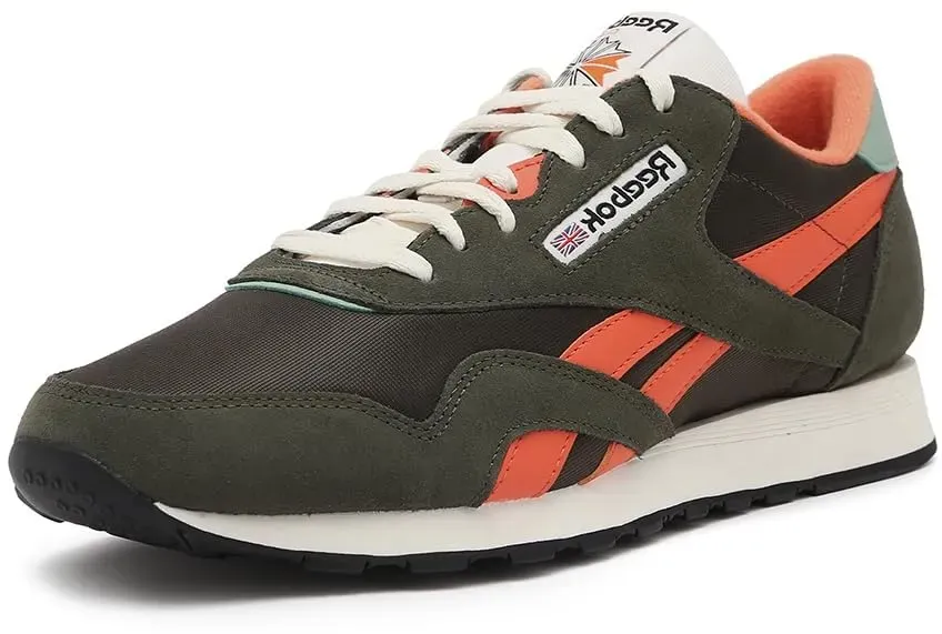 Gewöhnlich versandfertig in 3 bis 4 TagenReebok Herren Classic Nylon Sneaker, Hunter Green/Pump ORANGE/Vintage Chalk, 42 EU - 42 EU