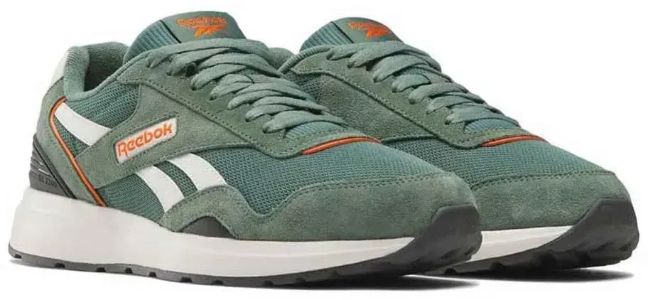 Kategorie: Sneaker - Reebok - GTIN:1200161238055 - Obermaterial aus Nylon und Veloursleder Schnürverschluss EVA Zwischensohle Gepolsterte Schaumstoff Einlegesohle Strapazierfähige Gummiaußensohle - 70,99 Euro bei Amazon Marketplace Shoes - gefunden von billiger.de Ein Unisex-Sneaker mit einem frischen Farbmix aus Escape Green, Chalk und Pump Orange. ![]() ![]() Reebok Unisex's Gl1100 Sneaker, Escape Green Chalk Pump Orange, 42 EU - 41.5/42 EU