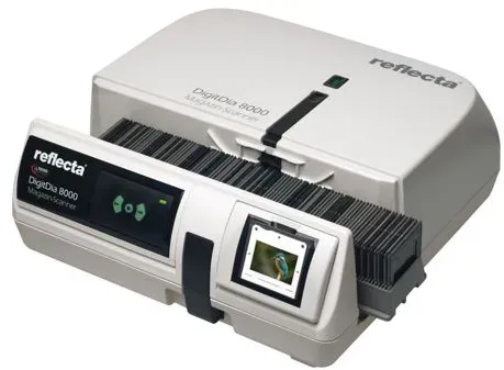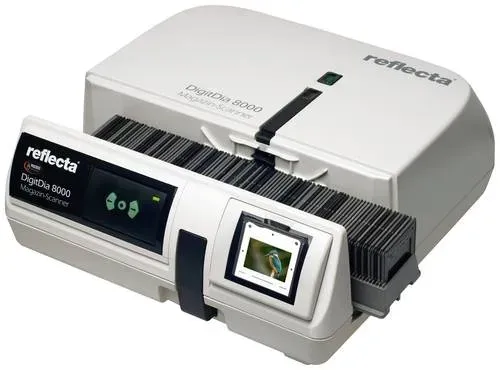 2 Händlerangebote bei billiger.de - Kategorie: Diascanner - reflecta - Mit einer Auflösung von bis zu 10.000 DPI und einer Maximaldichte von 4.2 Dmax, produziert der Magazinscanner DigitDia 8000 jetzt in noch höherer Geschwindigkeit digitale Reproduktionen Ihrer Dias in Spitzenqualität. Der Scanner arbeitet völlig selbstständig, es muss lediglich das Magazin in den Scanner eingeschoben und die Anzahl der zu scannenden Dias in die Software eingegeben werden. Die Scansoftware bietet zudem Automatik-Funktionen für Belichtung, Farbe und Kontrast. Mit dem Feature AutoColor können zudem stark farbstichige Dias rekonstruiert werden. - GTIN:4005039657801 ![]() ![]() Reflecta DigitDia 8000