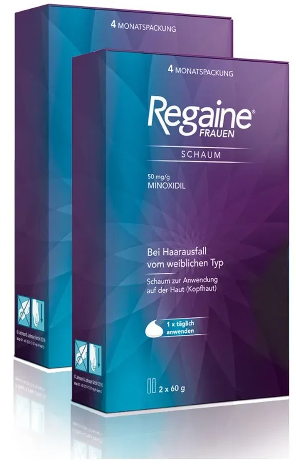 Verfügbarkeit: 1-2 Werktage - 340,42 €/kg - Kategorie: Arzneimittel - kenvue - GTIN:4150110822026 - PZN:11082202 - Regaine Frauen Schaum mit Minoxidil 2X60 g - rezeptfrei - von Kenvue Germany GmbH (OTC) - Schaum - 120 g - 40,85 Euro bei DocMorris Apotheke - gefunden von billiger.de Diese 4-Monatspackung bietet ein gutes Preis-Leistungs-Verhältnis für eine längere Anwendung. ![]() ![]() Johnson & Johnson REGAINE Frauen Schaum mit Minoxidil: Stoppt erblich bedingten Haarausfall bei Frauen und regt das Haarwachstum an, 4-Monatspackung, 2 x 60 g