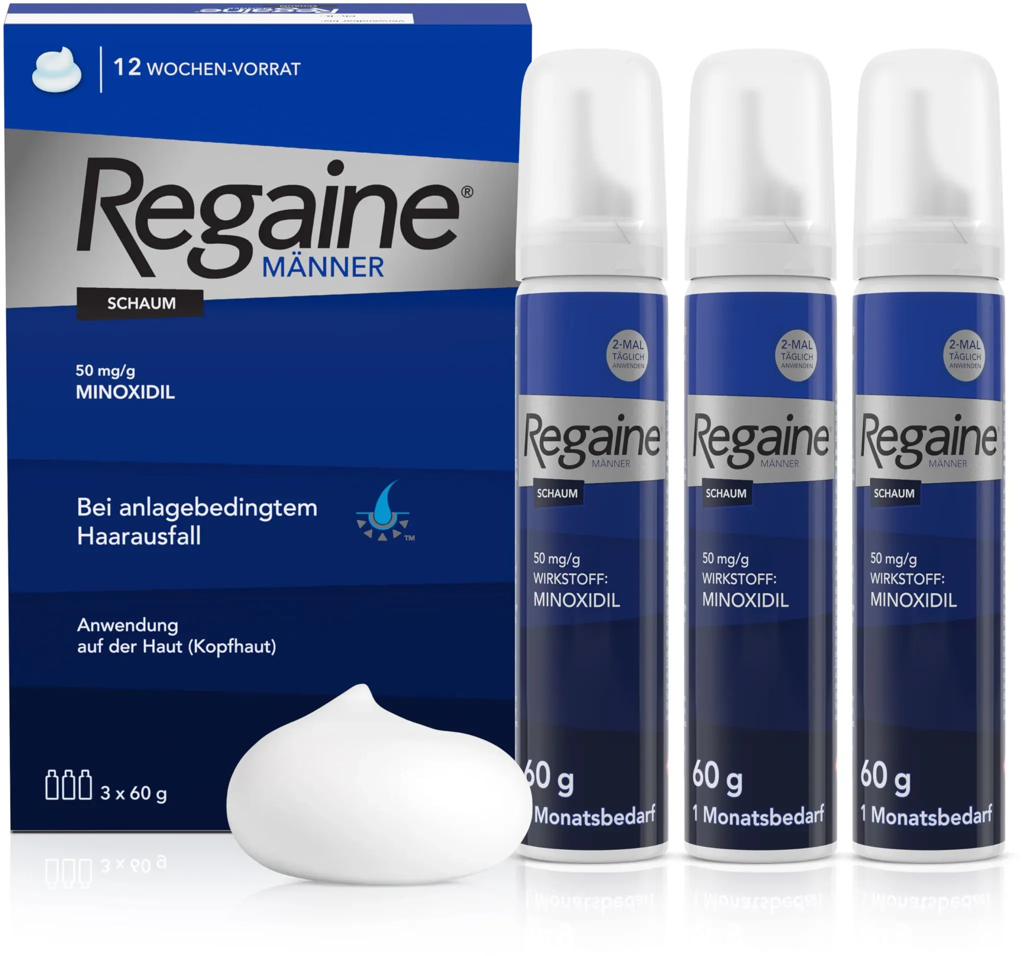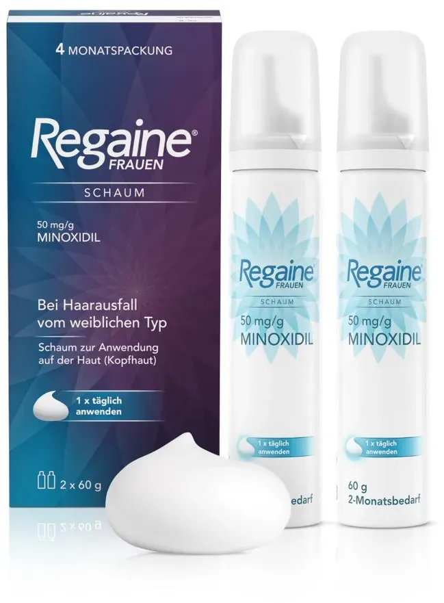 277,61 /l - Kategorie: Arzneimittel - kenvue - GTIN:4150091002752 - PZN:09100275 - Regaine Männer Schaum mit Minoxidil 3X60 ml - rezeptfrei - von Kenvue Germany GmbH (OTC) - Schaum - 180 ml - 49,97 Euro bei DocMorris Apotheke - gefunden von billiger.de Für 50.07 Euro erhalten Frauen hier eine 4-Monatspackung Regaine Schaum, was eine kostengünstige Option für eine längere Anwendung ist. ![]() ![]() Johnson & Johnson REGAINE Frauen Schaum mit Minoxidil: Stoppt erblich bedingten Haarausfall bei Frauen und regt das Haarwachstum an, 4-Monatspackung, 2 x 60 g
