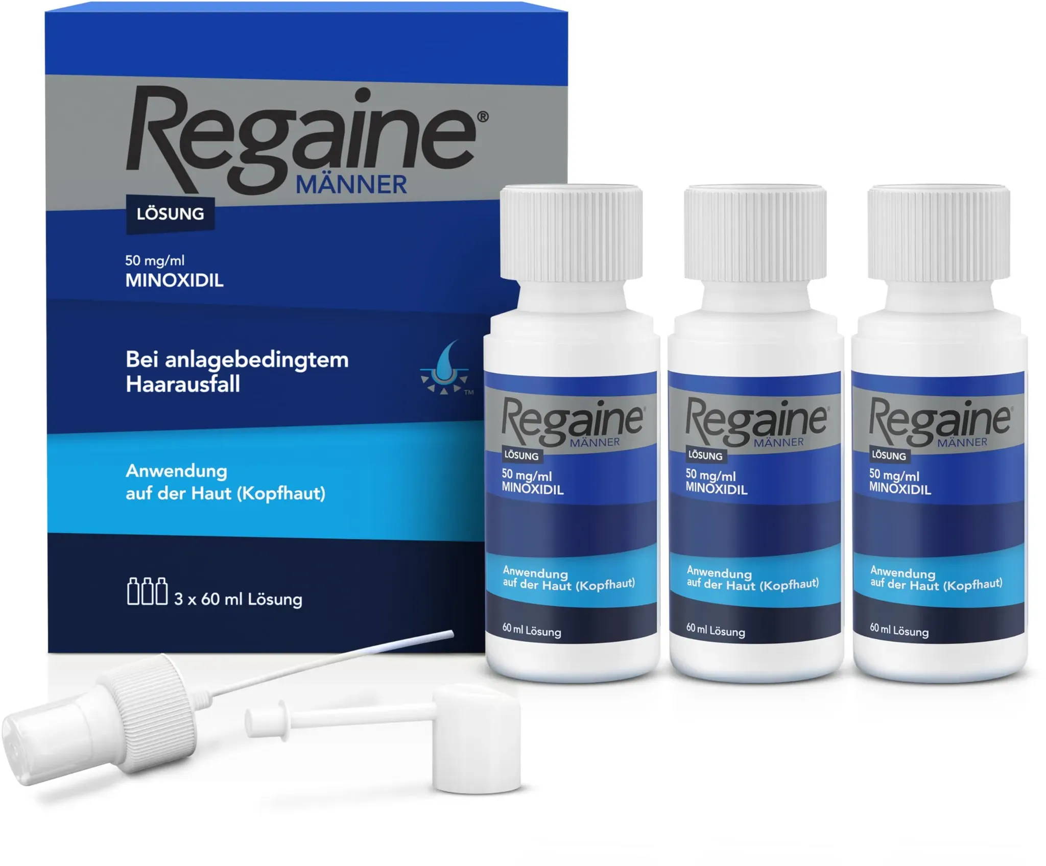 312,72 /l - Kategorie: Arzneimittel - kenvue - GTIN:4150036711664 - PZN:03671166 - Regaine Männer Lösung mit Minoxidil 3X60 ml - rezeptfrei - von Kenvue Germany GmbH (OTC) - Lösung - 180 ml - 56,29 Euro bei DocMorris Apotheke - gefunden von billiger.de Dieses Angebot bietet eine 3-Monatspackung Regaine Männer Lösung für 64.79 Euro, ideal für eine längere Anwendung. Medpex.de