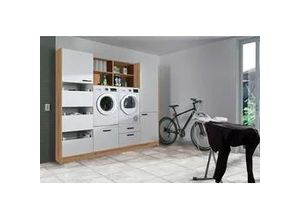 Wohnen - - Produktdetails: Set beinhaltet: In folgenden Farben erhältlich: : Korpus/Front: anthrazit/weiß matt. Details zur Ausstattung: : Türen mit Soft-Close-Funktion, Schubkästen mit Soft-Close-Funktion, Laufleisten der Schubkästen aus Metall, Griffe aus Metall, Sockelhöhe: 120 cm, FSC®-zertifiziert, Made in Germany. Set bestehend aus: : 1 Wäscheschrank inklusive drei Wäschekörbe, Fassungsvermögen ca. 41 l, 2 Geräteschrank-Unterbau für Waschmaschine oder Trockner, Maße ca. B/T/H: 60/58/57 cm, 1 Vorrats-Besenschrank, 2 Oberschrankregal, 1 Sockelblende, 2 Seitenwangen. Vorratsschrank: : Vorrats-Besenschrank, 1 Tür, 1 fester Einlegeboden, 1 Schlauch- und Gerätehalter mit Hakenleiste (5 Haken), 4 Ablagekörbe, Maße (B/T/H): 60/58/207 cm. Vorratsschrank: : Wäscheschrank inklusive drei Wäschekörbe, 1 Tür, 3 Auszüge, 1 Einlegeboden, höhenverstellbar, Maße (B/T/H): 60/58/207 cm. Geräteschrank-Unterbau: : Belastbar bis max. 100 kg, 1 Schubkasten, 1 Auszug, 1 Wäschekorbablage, Nur zwischen Seitenschränken oder Wangen einplanen! Das Gerät wird seitlich nicht abgedeckt und der überbau muss seitlich befestigt werden!, Maße (B/T/H): 60/58/57 cm. Geräteschrank-Unterbau: : Belastbar bis max. 100 kg, 1 Auszug, Nur zwischen Seitenschränken oder Wangen einplanen! Das Gerät wird seitlich nicht abgedeckt und der überbau muss seitlich befestigt werden!. Regal: : 2 Ablagen, 2 Fächer, Fachmaße (B/T): ca. 56,8/34,7 cm, 1 verstellbarer Einlegeboden, Regalböden belastbar bis max. 15 kg, Maße ... ![]() ![]() Schrank-Set EXPRESS KüCHEN 'Arta', grau (weiß, anthrazit), B:240cm H:207cm T:58cm, Holzwerkstoff, Kastenmöbel-Sets, Mehrzweckschrank, ohne Geräte, vormontiert, mit Soft-Close-Funktion, Stellbreite 245cm