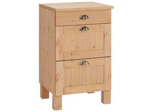 Regale Wohnen Aufbewahren Ordnen - - Produktdetails: Markeninformationen: Seit 2001 begeistert uns Home affaire mit Landhausmöbeln zum Verlieben. Ob modern, romantisch oder natürlich traditionell - der Fantasie für wunderschönes Einrichten sind kaum Grenzen gesetzt., Ausstattung Funktionen: Art Auszug: Teilauszug, Anzahl Füße: 4 Stk., Anzahl Schubladen: 3 Stk., Anzahl Schubladen klein: 3 Stk., Anzahl Griffe: 3 Stk., Art Füße: Vierkantfuß, Art Griffe: Muschelgriff, Art Schubladenauszug: Teilauszug, Maßangaben: Breite: 50 cm, Tiefe: 50 cm, Höhe: 85 cm, Stärke Korpuswände: 1,5 cm, Breite Arbeitsplatte: 50 cm, Tiefe Arbeitsplatte: 50 cm, Stärke Arbeitsplatte: 2,3 mm, Breite Schubladeninnenmaß: 44,3 cm, Tiefe Schubladeninnenmaß: 43,1 cm, Höhe Schubladeninnenmaß: 18,7 cm, Breite Schubladeninnenmaß 2: 44 cm, Höhe Schubladeninnenmaß 2: 8,7 cm, Höhe Füße: 12 cm, Bodenfreiheit: 12 cm, Ergänzende Maßangaben: Vierkantfuß B/T/H 5/4,5/12 cm, Hinweis Maßangaben: Alle Angaben sind ca.-Maße., Material: Material: Massivholz, Holzart: Kiefer, Material Korpus: Massivholz, Material Schublade: Massivholz, Material Schubladenauszug: Metall, Material Griffe: Metall, Material Beschläge: Metall, Material Rückwand: MDF, Materialhinweis: Das Label des FSC® weist nach, dass Sie mit dem Kauf dieser Produkte vorbildliche Waldwirtschaft - nach den strengen sozialen und wirtschaftlichen Standards des Forest Stewardship Council® - fördern und die Waldressourcen schonen., Die Sichtbarkeit der Holzstruktur ... Ein breiterer Massivholz-Unterschrank von HOME AFFAIRE mit zwei Schubkästen, der viel Stauraum und eine ansprechende Optik bietet. ![]() Unterschrank HOME AFFAIRE 'Oslo', beige (natur gebeizt, gewachst), B:100cm H:85cm T:50cm, Massivholz, Schränke, Unterschrank, 100 cm breit, in 2 Tiefen, mit 23 mm Arbeitsplatte, 2 Schubkästen