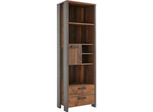 Regale Wohnen Aufbewahren Ordnen - - Rustikales Design im Vintage-Look kehrt mit dem Regal von FORTE im Zuhause ein. Gefertigt wird es aus FSC®-zertifiziertem Holzwerkstoff mit sichtbarer Struktur und Maserung. Für die besondere Optik sorgen die gewollten Gebrauchsspuren im Zusammenspiel mit den schicken Griffen. Schicke Kontraste setzen die seitlich platzierten Leisten. In den offenen Fächern stellt es viel Stellfläche für Utensilien, von Büchern bis zu Dekorationen und Ordnern, bereit., Produktdetails: Markeninformationen: FORTE - Ihr Experte für funktionales Möbeldesign seit über 3 n. Als ein traditionsreiches Familienunternehmen bieten wir hochwertige Möbel mit einem Fokus auf individuelle Kundenbedürfnisse. Unser kreatives Team aus Designern und Produktentwicklern arbeitet ständig an innovativen Lösungen, die höchsten Qualitäts- und Ethikstandards entsprechen. Mit modernen Fabriken im Nordosten Polens und einer der fortschrittlichsten Spanplattenfabriken in Europa setzen wir auf technologische Innovation und Prozessautomatisierung. FORTE blickt auf eine lange Tradition zurück, die 1917 begann, und verbindet generationsübergreifendes Wissen mit modernster Fertigung. Als führender Hersteller von Möbeln zum Selberbauen legt Forte großen Wert auf Umweltschutz, um eine lebenswerte Zukunft zu sichern., Maßangaben: Breite: 67 cm, Tiefe: 42 cm, Höhe: 205 cm, Breite Fachinnenmaß: 57 cm, Tiefe Fachinnenmaß: 37 cm, Höhe Fachinnenmaß: 36 cm, Breite Fachinnenmaß 2: 57 cm, Tiefe ... Dieses Bücherregal ist eine hochwertige und geräumige Option für alle, die viel Stauraum benötigen und Wert auf Design legen. ![]()