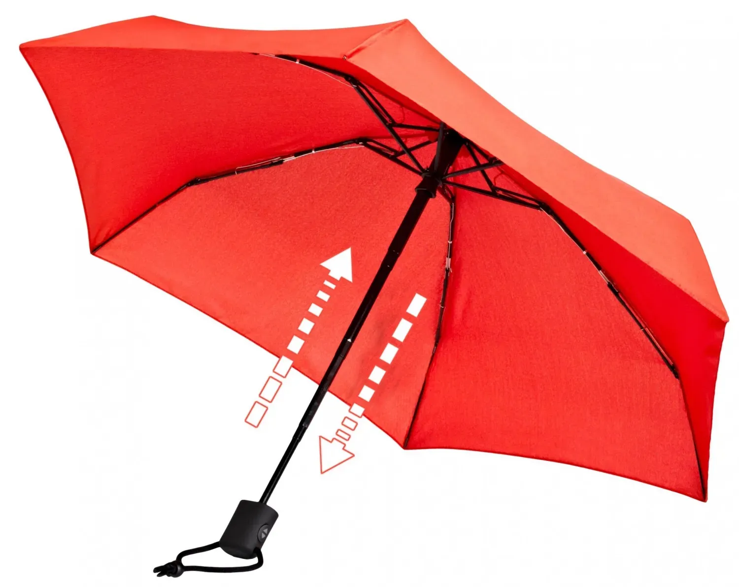 Kategorie: Regenschirme - Euroschirm - GTIN:4022973006762 - Der Automatik-Schirm überzeugt durch sein extrem kleines und flaches Packmaß geschlossen ist er ca. 22 cm kurz und 3,5 cm flach. Geöffnet überrascht das Wetterdach mit einem Durchmessser von ca. 93 cm. Mit zuverlässiger Auf-/Zu-Automatik und stabilem Metallschaft (4-teilig und korrosionsfest), 6 windflexible Schienen aus einer Kombination aus Metall und Glasfaser. ABS-Griff mit Senosoft-Oberfläche und praktisch verstellbarer Trageschlaufe. Extra leichtes und dennoch reißfestes Polyester-Gewebe, Teflon * behandelt, und somit schmutz- und wasserabweisend. Doppelte Nähte zwischen den Segmenten verhindern das schnelle Ausreißen des Bezugs im Wind. Extra kurze Spitzen minimieren die Verletzungsgefahr. Robuste Nylon-Schutzhülle mit Fixierschlaufe zum Tragen am Rucksack oder am Gürtel, sowie Aluminium-Karabiner zur weiteren alternativen Befestigung. - 44,90 Euro bei biwak.com - gefunden von billiger.de ![]() ![]() Euroschirm Dainty - rot automatic eBay outdoor Trekking Regenschirm Taschenschirm