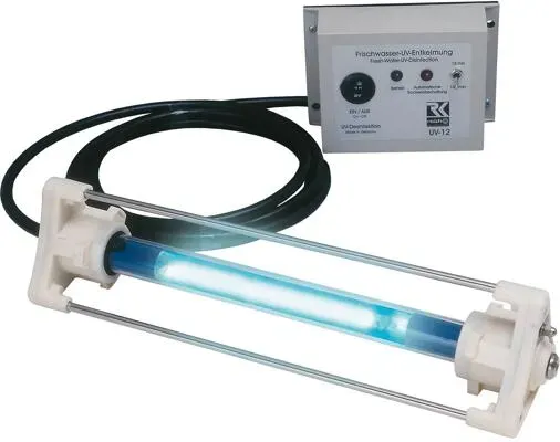 2 Händlerangebote bei billiger.de - Kategorie: Caravan-Zubehör - Reich - Aufbewahrung von Trinkwasser führt innerhalb weniger Tage zur Verkeimung. Bakterien bilden sich und schaden Ihrer Gesundheit. Die beste Gegenmaßnahme hierfür sind UV-Strahler, deren Wirkung auf der Zerstörung der Erbinformationsübermittlung bei der Zellteilung beruht. Als Folge davon sterben Bakterien ab. Der Reich UV-12-Tauchstrahler folgt diesem Prinzip. Er besteht aus einem von Spezial-Quarzglas umhüllten Tauchrohr sowie einem elektronischen Vorschaltgerät, das zur Steuerung der Leistungsversorgung dient. Wasserdichte Stromanschlüsse und kompakte Maße erlauben einen Einsatz als Tauchstrahler in Frischwassertanks. In Betrieb, wird der Tauchstrahler vom elektronischen Vor-schaltgerät alle 4 Stunden für 15 Minuten eingeschaltet. Diese kurze Zeit reicht aus, um die Erbinformationsübermittlung bei der Zellteilung zu stören und Bakterien dadurch absterben zu lassen. Dank besonders energiesparender Arbeitsweise kann der Tauchstrahler auch mit einem Solarpanel betrieben werden. Der Einbau des UV-12-Tauchstrahlers von Reich ist unkompliziert und kann auch leicht selbst vorgenommen werden. Durch den Tankdeckel oder Tank wird einfach ein Loch von 20,5 mm Durchmesser gebohrt und eine Verschraubung angebracht. Durch diese wird das Versorgungskabel des Tauchstrahlers geführt und der Tauchstrahler selbst wird an diesem Kabel bis auf den Tankboden abgesenkt. Anschließend werdender Tankdeckel und die ... Dieses Angebot ist empfehlenswert, da es sich um eine "Reich UV 12 Desinfektion 12 Volt" handelt, die direkt der Suchanfrage entspricht und eine weitere Kaufoption über Amazon bietet. ![]() ![]() Reich UV 12 Desinfektion 12 Volt