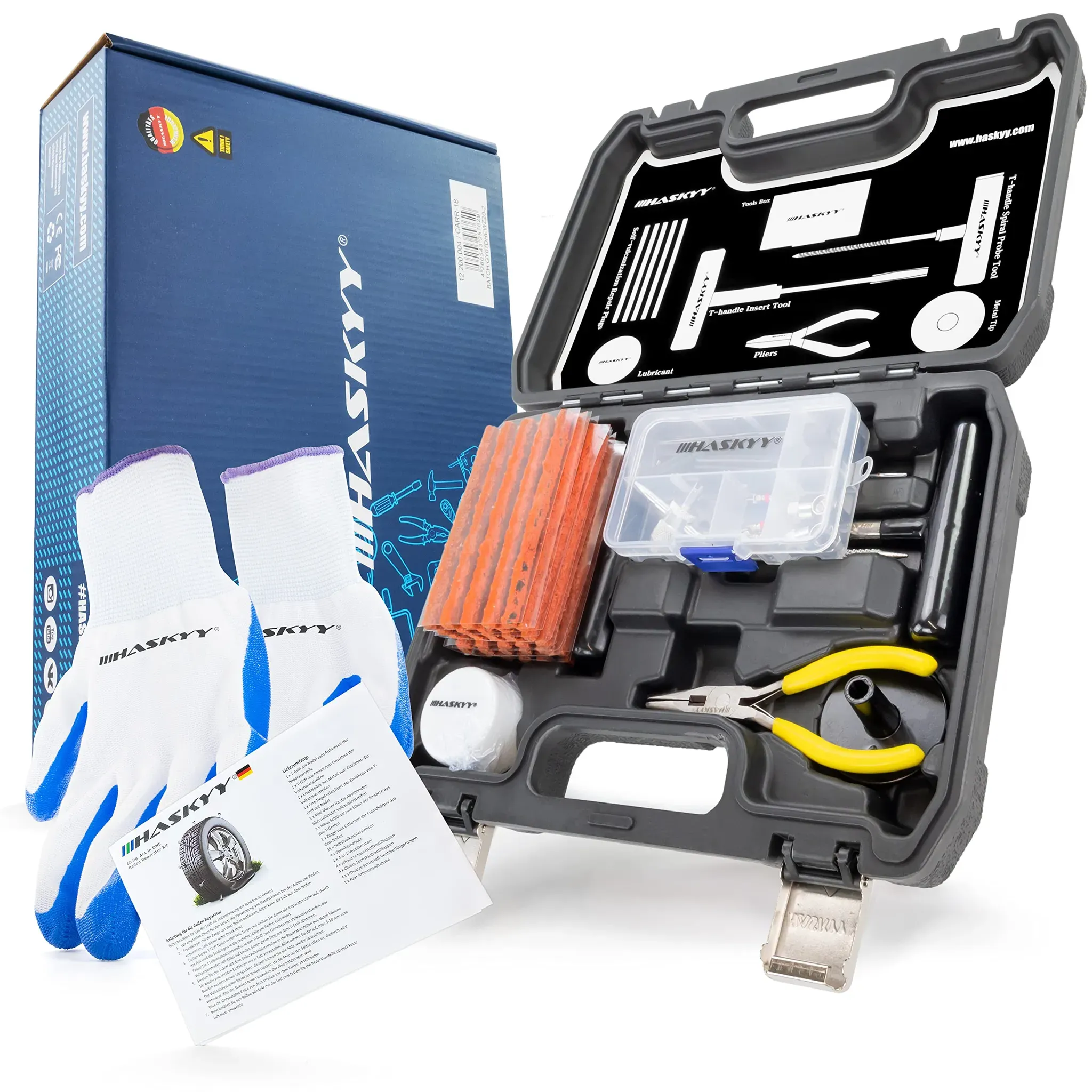 Kategorie: Werkstatteinrichtung - TECPO - GTIN:4251186225695 - Schnelle Reifenreparatur: Ideal für schlauchlose Reifen mit Schäden bis zu 6 mm für PKW, Quads, Anhänger und mehr. Umfangreicher Lieferumfang: Enthält T-Griff-Werkzeuge, 70 Vulkanisierstreifen, Kleber, Versiegelungsschmiermittel und mehr. Langlebige Reparatur: Vulkanisierende Streifen und hochwertiger Kleber sorgen für eine zuverlässige Abdichtung. Praktischer Aufbewahrungskoffer: Alle Werkzeuge ordentlich verstaut ideal für unterwegs und in der Werkstatt. Einfache Anwendung: Verständliche Anleitung für eine schnelle und unkomplizierte Nutzung. - 23,99 Euro bei Amazon Marketplace Home Improvement - gefunden von billiger.de Dieses umfangreiche 60-teilige Profi-Set ist vielseitig einsetzbar für PKW, LKW, Motorrad und weitere Fahrzeuge und bietet eine solide Ausstattung. ![]() ![]() Haskyy 60 tlg. Profi Reifen-Reparatur-Set I Pannenset PKW - LKW - Motorrad - Bagger - QUAD - ATVs - Traktor - Auto I Reifen-Flick-Set I Reifen Flickzeug