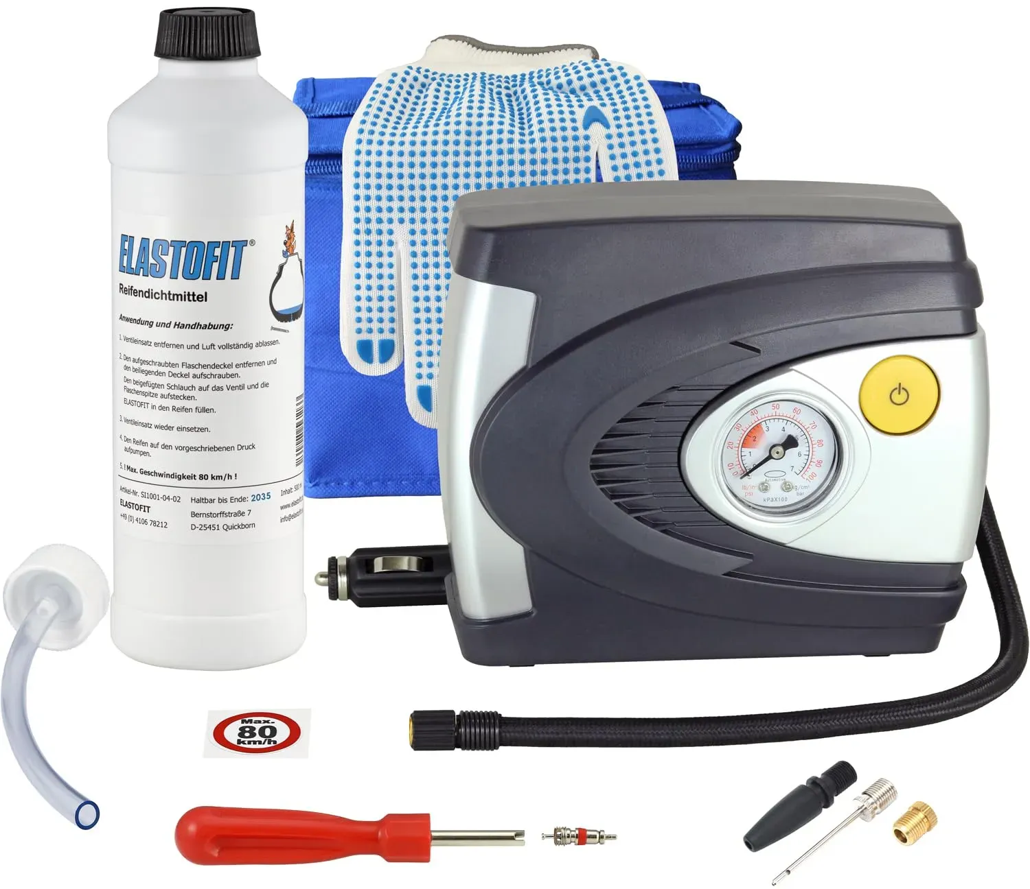 Gewöhnlich versandfertig in 4 bis 5 TagenELASTOFIT Reifen Pannenset mit Kompressor Reifendichtmittel 10 Jahre haltbar (Basic Blue)