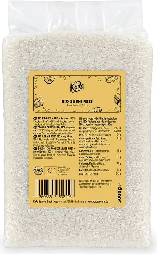 Verfügbarkeit: 1-3 Werktage - 4,78 €/kg - Kategorie: Reis & Hülsenfrüchte - Koro - GTIN:4260335838426 - NATURBELASSEN: Der Sushireis ist ohne Farbstoffe, Konservierungsmittel, Gentechnik und andere Zusätzen. VIELSEITIG: Der Sushireis ist nicht nur Deine Grundzutat für Dein Sushi, sondern überzeugt auch in dem neuen Trendgericht aus Hawaii: der Poké Bowl. WERTVOLL: Unser Naturreis ist die perfekte Sättigungsbeilage für jedes Mittag- oder Abendessen: Als Beilage zu gedünstetem Gemüse, knackigen Salaten und gebratenem Fisch oder Fleisch. FüR DICH: Unser Reis ist aus Biologischem Anbau und kommt aus Italien. PRINZIPIEN: Mehr ist einfach mehr! Daher gibt es alle Leckereien bei KoRo in Vorteilspackungen €“ Füllt den Vorratsschrank und erfreut den Geldbeutel! Ursprungsland:ItalienBrennwert (pro 100 g):354 kcalBrennwert (pro 100 g):1504 kJProteingehalt (pro 100 g):6,7 gBallaststoffgehalt (pro 100 g):1 gZuckergehalt (pro 100g):0 gSalzgehalt (pro 100g):0,02 gKohlenhydratgehalt (pro 100 g):80 g - 23,90 Euro bei Kaufland.de - gefunden von billiger.de Dieser Shinode Sushi Reis in der 10 kg Packung ist ideal für alle, die regelmäßig Sushi zubereiten. ![]() ![]() Shinode Sushi Reis 10 kg