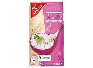 Feinschmecker Lifestyle - - GUT GüNSTIG Jasmin Reis 1,0 kg: Spitzenqualität zum unschlagbaren PreisDer GUT GüNSTIG Jasmin Reis bietet Ihnen eine exquisite Auswahl an schlanken Körnern, die für ihren unvergleichlichen Geschmack bekannt sind. Jeder Bissen verheißt einen Hauch von aromatischer Frische, der Ihre Sinne belebt. GUT GüNSTIG ist stolz darauf, Ihnen die feinste Qualität von Jasmin Reis zu einem unschlagbaren Preis anbieten zu können. Der Reis wird sorgfältig ausgewählt und verarbeitet, um sicherzustellen, dass Sie stets ein Produkt von höchster Güte erhalten.Perfekt für asiatische GerichteEgal ob als Beilage zu exotischen Currys oder als Begleitung zu Fisch und Fleisch - mit dem GUT GüNSTIG Jasmin Duftreis sind Ihren kulinarischen Kreationen keine Grenzen gesetzt. Entdecken Sie die Vielfalt der Möglichkeiten und verwöhnen Sie Ihren Gaumen mit jedem Gericht.Kochanleitung für perfekten ReisgenussGenießen Sie die den Jasmin Reis, der nicht nur köstlich ist, sondern auch glutenfrei, laktosefrei, vegan und vegetarisch. Für die Zubereitung einen Topf mit mindestens 1 l lauwarmen Wasser mit einer Prise Salz zum Kochen bringen, 250 g Reis zugeben und auf kleiner Flamme ca. 10 - 12 Min. leicht sprudelnd kochen lassen. Reis abgießen und auf der ausgeschalteten Herdplatte mit geschlossenem Deckel 5 - 10 Min. ziehen lassen.Bestellen Sie jetzt den leicht klebenden Jasmin Duftreis von GUT GüNSTIG hier in unserem Online-Shop. - Versandkostenfrei: false - Sale: true - - - bei ... Dieser Basmati Reis ist eine solide und preisgünstige Option für den täglichen Gebrauch. ![]() GUT GüNSTIG Basmati Reis 1,0 kg