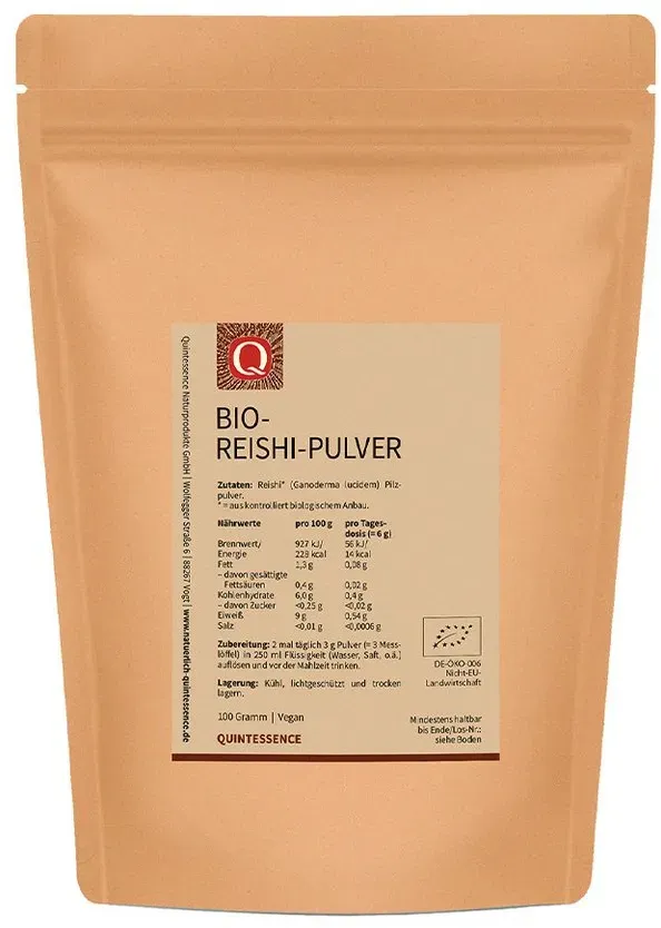 Kategorie: Nahrungsergänzungsmittel - Biotiva - GTIN:4260490461880 - BIO REISHI PULVER beinhaltet 100% reinsten getrockneten Reishipilz aus Bio-Anbau. lat. Ganoderma Lucidum. Ohne Zusatzstoffe. Nur Natur pur. HöCHSTE WIRKSTOFF QUALITäT: Das Reishipulver ist aus nachhaltigem, ökologischem Anbau und wird Wirkstoff-schonend vermahlen. Der Reishi Pilz wird auch Glänzender Lackporling oder 'Zehntausend-Jahre-Pilz' genannt. MENSCH & UMWELT SIND UNS WICHTIG. Das Produkt ist vegan, laktosefrei, glutenfrei, sojafrei und ohne Zuckerzusatz. Ohne Zusatzstoffe. Alufreie Vorratsverpackung mit Zipverschluss. 3 BIO-EXPERTISE. MADE IN GERMANY. Nach über 3 n Erfahrung mit Bio kennen wir die besten Anbaugebiete und zuverlässigsten Anbauer und Verarbeiter. Jedes Produkt wird abschließend in unserer Manufaktur kontrolliert und abgefüllt. FüR DEINE ZUFRIEDENHEIT: Als Familienunternehmen wollen wir Dich langfristig zufrieden stellen. Solltest Du trotzdem mal unzufrieden sein, eine Frage haben oder Hilfe brauchen, dann melde Dich bitte. Gemeinsam suchen wir eine Lösung. - 13,49 Euro bei Amazon Marketplace Health & Personal Care - gefunden von billiger.de Ein naturreines Bio-Reishi Pulver in Rohkostqualität, das vielseitig einsetzbar ist. ![]() ![]() Curly Superfood Bio Reishi Pulver 250g - 100% naturreine BIO Rohkostqualität & maximaler Nährstoffgehalt - Fein gemahlenes Reishi Pilz Pulver Bio für Reishi Tee, Smoothies, Säfte & Speisen