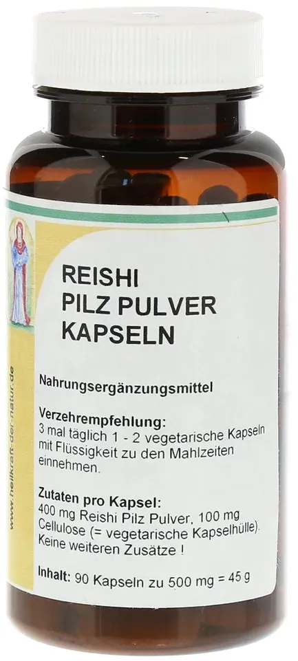 Kategorie: Nahrungsergänzungsmittel - taste market - GTIN:4262453146032 - 100g Reishi Pulver aus kontrolliert biologischem Anbau | Hochwertiges Reishi Pulver aus kontrolliert biologischem Anbau, ohne Zusatzstoffe, Aromen oder Konservierungsmittel. Schonend verarbeitet für maximale Qualität Die Reishi-Pilze werden behutsam geerntet, schonend getrocknet und extra fein vermahlen, sodass das Pulver besonders gut löslich und vielseitig einsetzbar ist. Vielseitig & einfach in der Anwendung Ob als Zutat in Heißgetränken, Smoothies oder zum Verfeinern von Speisen das fein gemahlene Pulver lässt sich mühelos dosieren und in den Alltag integrieren. TASTE MARKET Dein Marktplatz für guten Geschmack! Bei uns findest du eine große Auswahl an hochwertigen Produkten aus aller Welt von Nahrungsergänzungsmitteln über Tee, Nüsse und Gewürze bis hin zu Superfoods und Snacks. Egal ob für den kleinen Hunger oder bewusste Ernährung, wir haben für jeden Geschmack das Richtige! Du hast Fragen zu unseren Produkten? Kontaktiere gerne unseren Kundenservice. Deine Bestellung frisch abgepackt: Direkt nach deiner Bestellung werden unsere Produkte in unserer eigenen Taste Manufaktur mit viel Sorgfalt von Hand abgefüllt. Dabei legen wir großen Wert auf hohe Qualitäts- und Hygienestandards. Deine Ware kommt im praktischen wiederverschließbaren Beutel aus Kraftpapier und wird mit der DHL versendet. - 8,49 Euro bei Amazon Marketplace Health & Personal Care - gefunden von billiger.de Diese Kapseln bieten eine bequeme Darreichungsform zu einem sehr niedrigen Preis pro Packung. ![]() ![]() Reinhildis-Apotheke Reishi Pilz Pulver Kapseln 90 St.