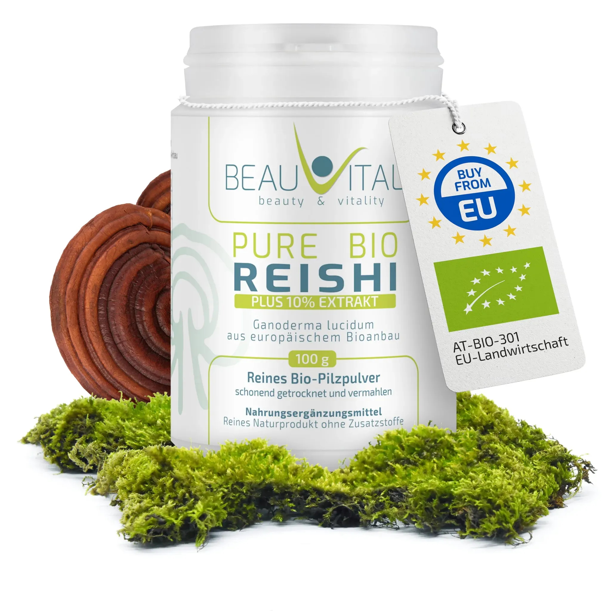 Kategorie: Sportnahrung - Curly Superfood - GTIN:4270000395932 - BIO ZERTIFIZIERT - 100% Reishi Pulver Bio aus kontrolliert ökologischem Anbau (DE-öKO-070) mit charakteristisch leicht pilzartigen, erdigen Geschmack und einer idealen Löslichkeit für Smoothies, Säfte und als Zugabe in Speisen HöCHSTE REINHEIT & ROHKOSTQUALITäT - Ausschließlich Bio Reishi Pulver mit maximalem Nährstoffgehalt durch schonende Trocknung & Mahlung des Reishi-Pilzes (Ganoderma lucidum) VIELFäLTIGE ANWENDUNGSMöGLICHKEITEN - Reishi Bio Pulver eignet sich ideal als Zusatz in Smoothie und Saft oder gemischt in Speisen (Joghurt, Müsli & Co). Verpackt in wiederverschließbaren Aromaschutzbeutel 100% NATURREIN & BIO ZERTIFIZIERT - Pilzpulver Bio rt ohne unerwünschte Zusätze dank genauer Kontrollen & sorgfältiger Abfüllung CURLY SUPERFOOD VERSPRECHEN - 180 Tage risikofrei testen - Aus überzeugung ren wir dir zu jeder Zeit einen erstklassigen Kundenservice und ersetzen das Reishi Pilz Pulver bei Bedarf 100% kostenlos! - 21,99 Euro bei Amazon Marketplace Health & Personal Care - gefunden von billiger.de Dieses Bio Reishi Pulver enthält zusätzlich 10% Reishi Extrakt, was eine höhere Konzentration an Wirkstoffen verspricht. ![]() ![]() BEAUVITAL Bio Reishi Pulver mit 10% [Reishi Extrakt] 100 g Reishi Pulver Pilze aus EU Bio-Landwirtschaft, Reishi Extrakt bio hochdosiert, vegan, ohne Zusatzstoffe