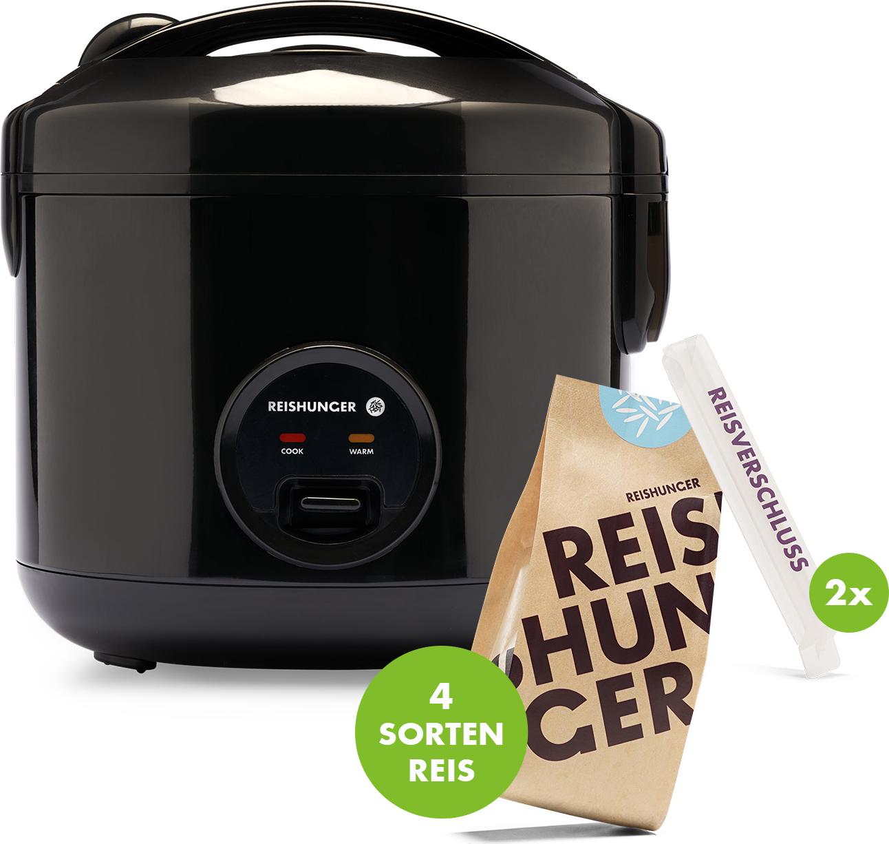 lieferbar-in 2-3 Werktagen bei dirReishunger Reiskocher Basis Reiskocher Bundle, 500 W, Mit Dampfgarfunktion & Warmhaltefunktion schwarz