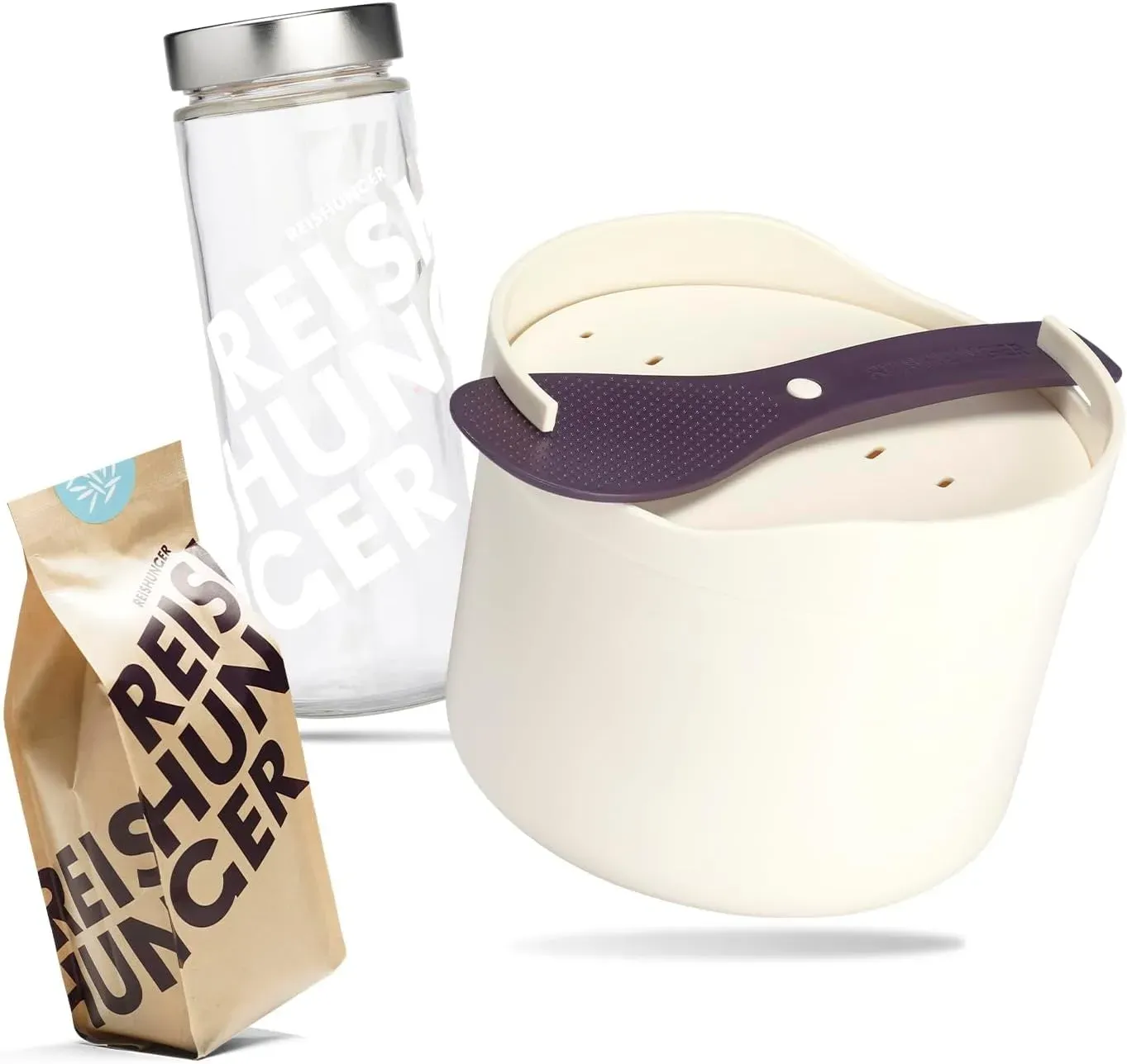 3 Händlerangebote bei billiger.de - Kategorie: Reiskocher - Reishunger - Das zeichnet unseren Großen Basis Reiskocher ausFür den großen ReishungerDie XXL-Version unseres elektrischen Reiskochers im schlichten Design ist einfach der ideale Einsteiger Reiskocher für alle, die gerne größere Portionen Reis kochen. Der Basis Reiskocher ist mit seinen 1,8 Litern Füllvolumen groß genug, um mühelos bis zu 10 Portionen Reis zuzubereiten. Dabei werden geschälte Reissorten ebenso wie Vollkorn Reis mit nur einem Modus einfach perfekt von lockerem Basmati Reis und Natur Reis bis zu klebrigem Sushi Reis. Gemüse, Fisch oder Fleisch lassen sich problemlos im großzügigen Dämpfeinsatz mitgaren. Kinderleichte ZubereitungUnser Großer Basis Reiskocher gart deinen liebsten Reis nicht nur besonders gleichmäßig und schonend seine Bedienung ist dazu auch noch besonders einfach: Reis und Wasser in den keramikbeschichteten Innentopf geben, ab in den Reiskocher und anschließend den Schalter in den Modus Cook stellen. Nach dem Kochen schaltet der Reiskocher automatisch in den Warmhaltemodus.DetailsMit Warmhaltefunktion für bis zu 8 StundenMit hochwertiger KeramikbeschichtungDurchmesser: 29 cm / Höhe: 29 cmLeistung: 700 W / 220-240 VFüllmenge: 1,8 l (10 Tassen Reis)Gewicht Reiskocher: 2,64 kg, Gewicht Innentopf: 450 gMit SicherheitsverschlussFarbe: Weiß / LilaInklusive Messbecher, Reislöffel und Dämpfeinsatz für GemüseBei Bestellungen aus der Schweiz wird automatisch das passende Steckersystem ... Dieses Starter Set bietet einen Reiskocher mit Keramikbeschichtung für bis zu 10 Portionen inklusive praktischem Zubehör wie Dämpfeinsatz und Messbecher. ![]() ![]() REISHUNGER Reiskocher & Dampfgarer mit Keramikbeschichtung, Weiß, 1,8L - bis zu 10 Portionen - Schnelle Zubereitung ohne Anbrennen - Mit Warmhaltefunktion inkl. Dämpfeinsatz, Löffel & Messbecher